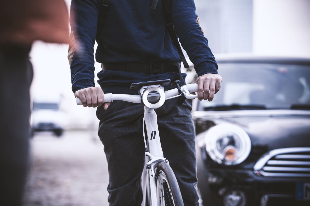 Além disso, a COBI possui uma mina manche de controle (também no volante - no lugar da campainha), que é controlado por um dedo, e última luz, que sem fio (Bluetooth ou ANT+) recebe comandos do volante e responde aos sensores.