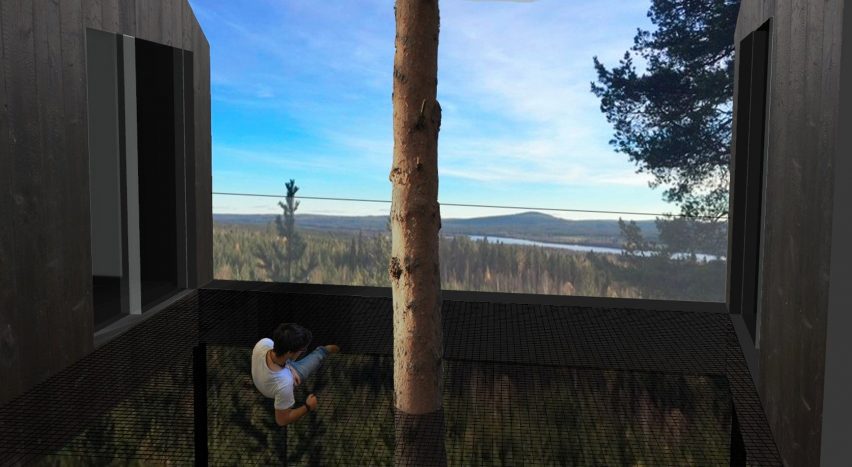 V sredini kraljuje rede, ki omogoča spanje pod zvezdnatim nebom ali pa mirno meditacijo v naravi. Meje med stavbami in gozdom so zamegljene, kar najbolj omogoči prevladujoči element copos. Tako ima obiskovalec ves čas občutek prisotnosti narave. Do stavbe vodijo stopnice, za prevoz prtljage pa poskrbi majhno dvigalo. V eni enoti se lahko nastani pet gostov. Além do mais dveh spalnic kabini pripadajo še svetla sala de estar, banheiro e terraço, zasnovana iz mreže. Interjer vključuje osvetlitev podjetja Ateljé Lyktan, ki je kabine opremil z namiznimi in glavnimi lučmi. Vse vključujejo možnost nastavitve intenzivnosti svetlobe. Več o projektu si lahko ogledate v spodnji galeriji.