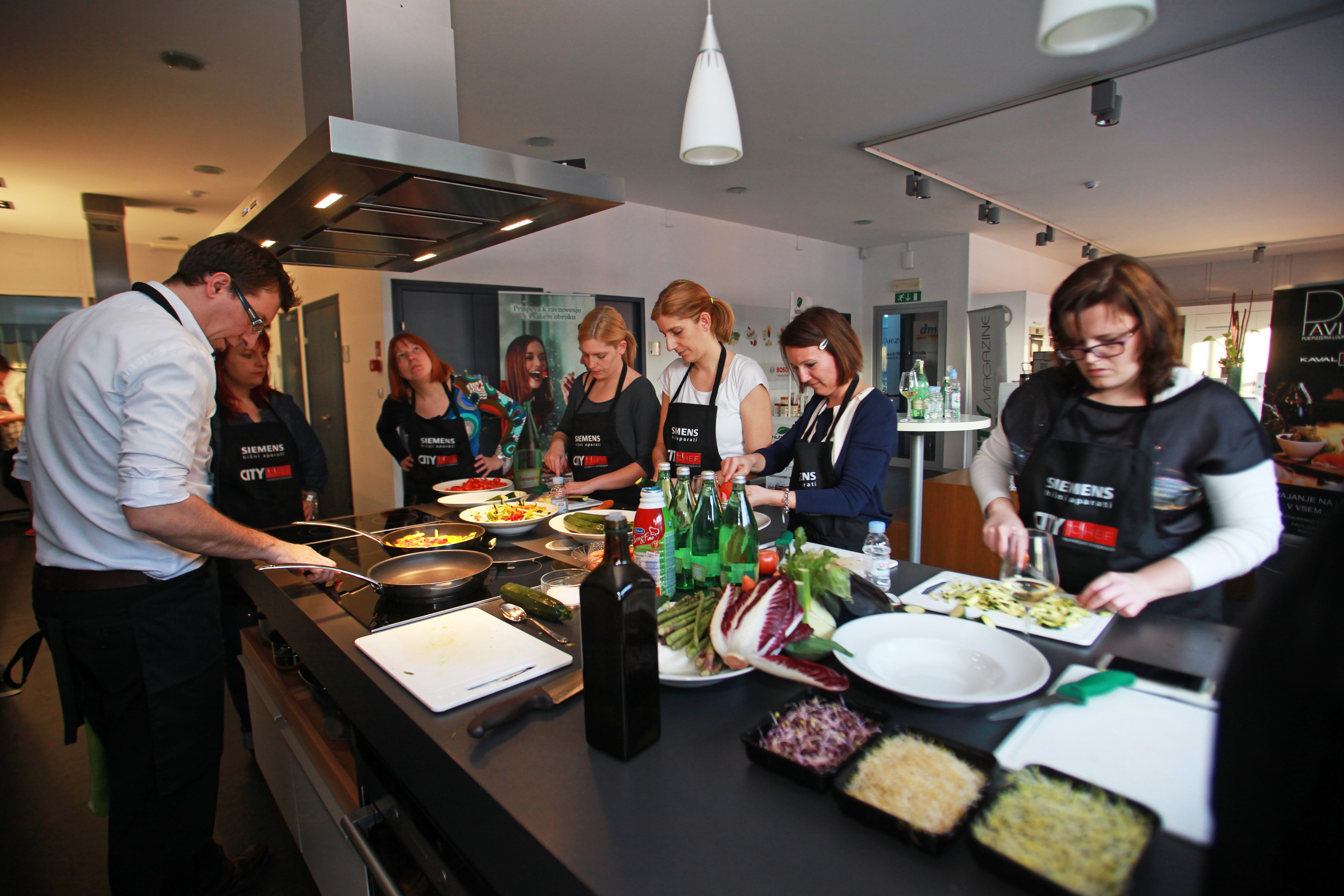 Gostaríamos de agradecer às empresas pela ajuda na organização da academia de culinária CITY CHEF Eletrodomésticos Siemens, Poço, Grupo Kaval, Nutrislim e vinhos Blažič.