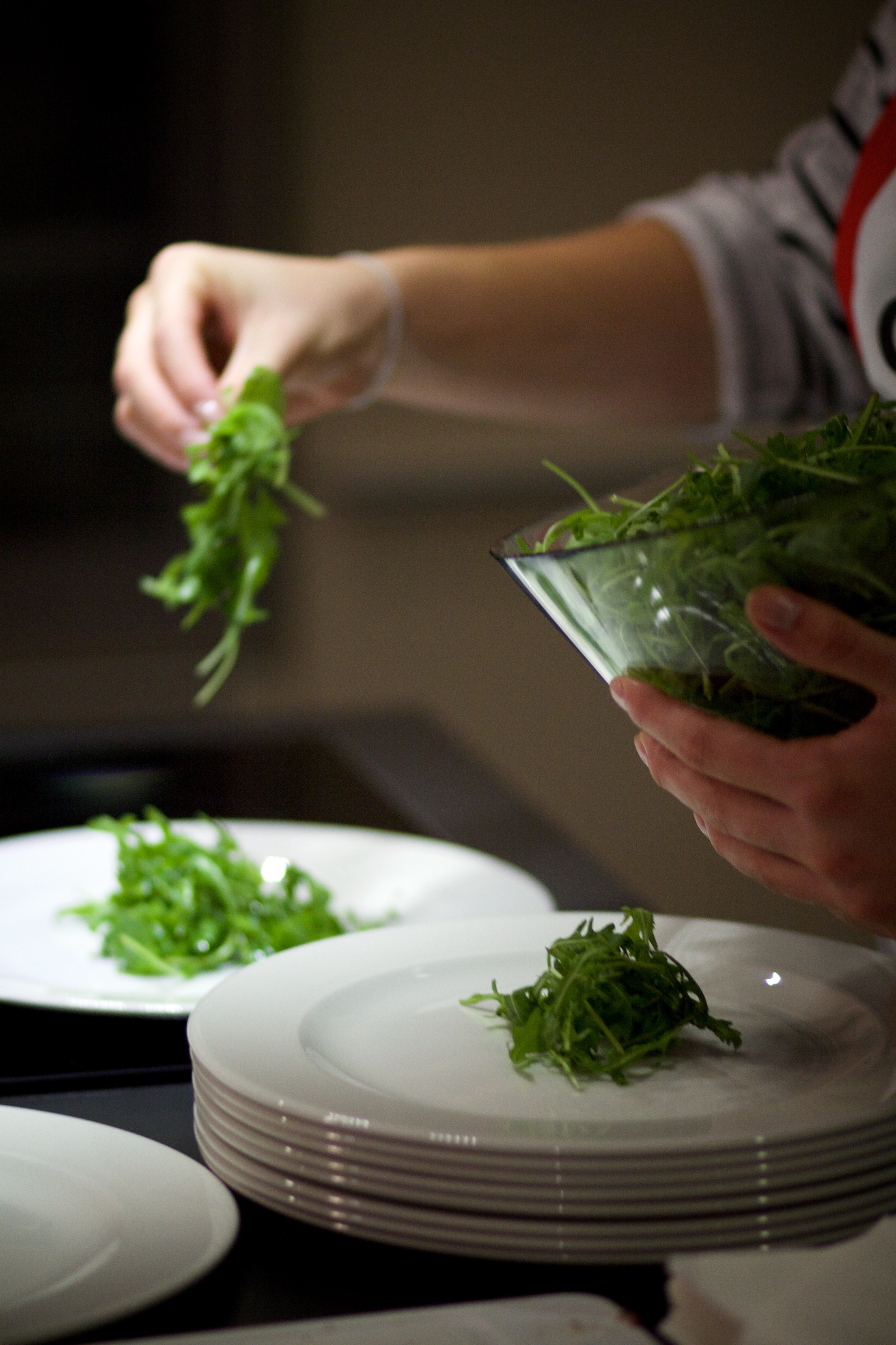 Spretno in z obilico humorja nas je popeljal in angažiral pri pripravi hobotnice v solati, kostanjevih njokov z gamberi in ribo, pečenega krompirja in govejega zrezka ter sladice s kozjim sirom, ki je lepo zaokrožila tri urice druženja ob štedilniku. Ob hrani pa je naše brbončice razvajalo tudi različno vino in uradna voda dogodka Poço.