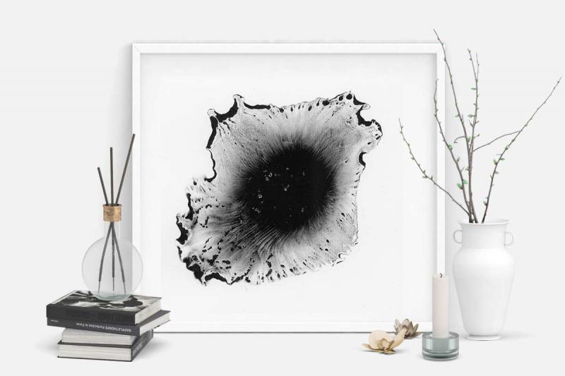vibrato é um site onde você pode carregar uma música à escolha, que depois se transforma num audiovisual produto de arte. O processo é bastante interessante. Um pedaço de plástico transparente de 4 x 4 polegadas é colocado sobre Alto-falante, e mesmo antes disso, uma tinta especialmente diluída é aplicada a ela. Então eles ligam a música e a arte pode começar. O resultado geralmente se parece com uma água-viva ou um cogumelo do ponto de vista de um sapo, e cada um é diferente. então uma foto aumentar e imprima-o em um pedaço de 30 x 30 polegadas de papel de arquivo Somerset Velvet de 310 gramas, adicionando uma assinatura e um número de série. O comprador também recebe um anexo original fotos. Tudo por 240 euros.
