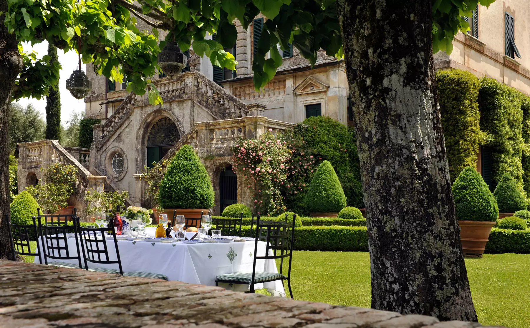 As vilas na Toscana são todas listadas como idílicas, também por causa da bela paisagem que as rodeia. Esta luxuosa villa está localizada no coração da região de Chianti e oferece vistas deslumbrantes sobre as colinas circundantes. Está localizado no topo de uma colina e oferece vistas deslumbrantes sobre a paisagem circundante, incluindo a pitoresca aldeia Panzano. A villa tem 28 elegantes quartos e suites, cada um dos quais é uma história à parte, uma vez que estão decorados com mobiliário antigo e obras de arte. A villa tem uma grande piscina rodeada por belos jardins onde os hóspedes podem relaxar e desfrutar do ambiente tranquilo. Uma quadra de tênis, academia e sauna também estão disponíveis.