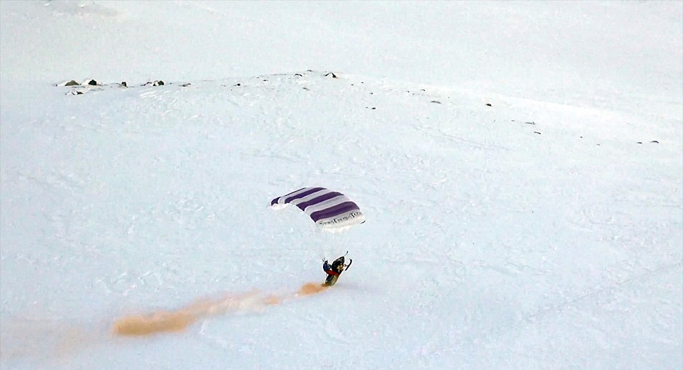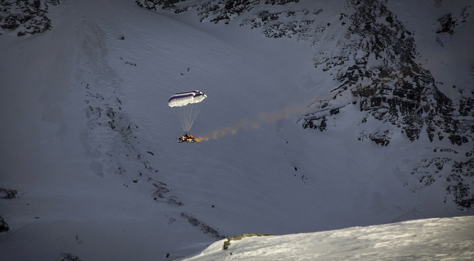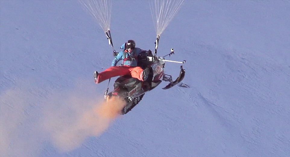 Entusiastas de adrenalina eles estão sempre em busca de novos desafios. Que fica nas montanhas suecas Riksgränsen feito pela equipe finlandesa Equipe de Dublês Freaks, no entanto, é uma loucura de proporções épicas. Moto de neve equipado com um pára-quedas, Antti Pendikainen e ele cavalgou com eles sobre o penhasco e... voou... e voou e voou.