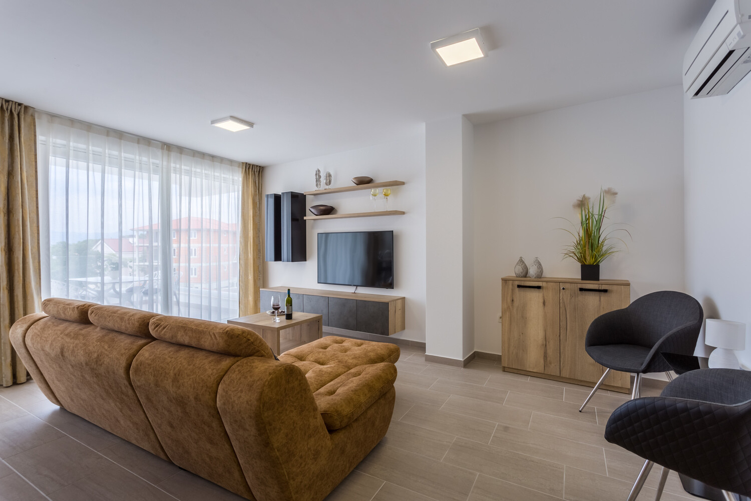 V priljubljenem mestecu Malinska na otoku Krku najdete vrsto zanimivih in privlačnih nastanitev, Pure Relax luksuzni apartma je brez dvoma ena izmed njih. V sklopu apartmaja sta urejeni dve spalnici, zato je primeren za bivanje do štirih oseb. V kolikor dobite obiske, je v dnevnem prostoru urejena tudi sedežna garnitura, ki se lahko raztegne in omogoča dodatni dve ležišči.