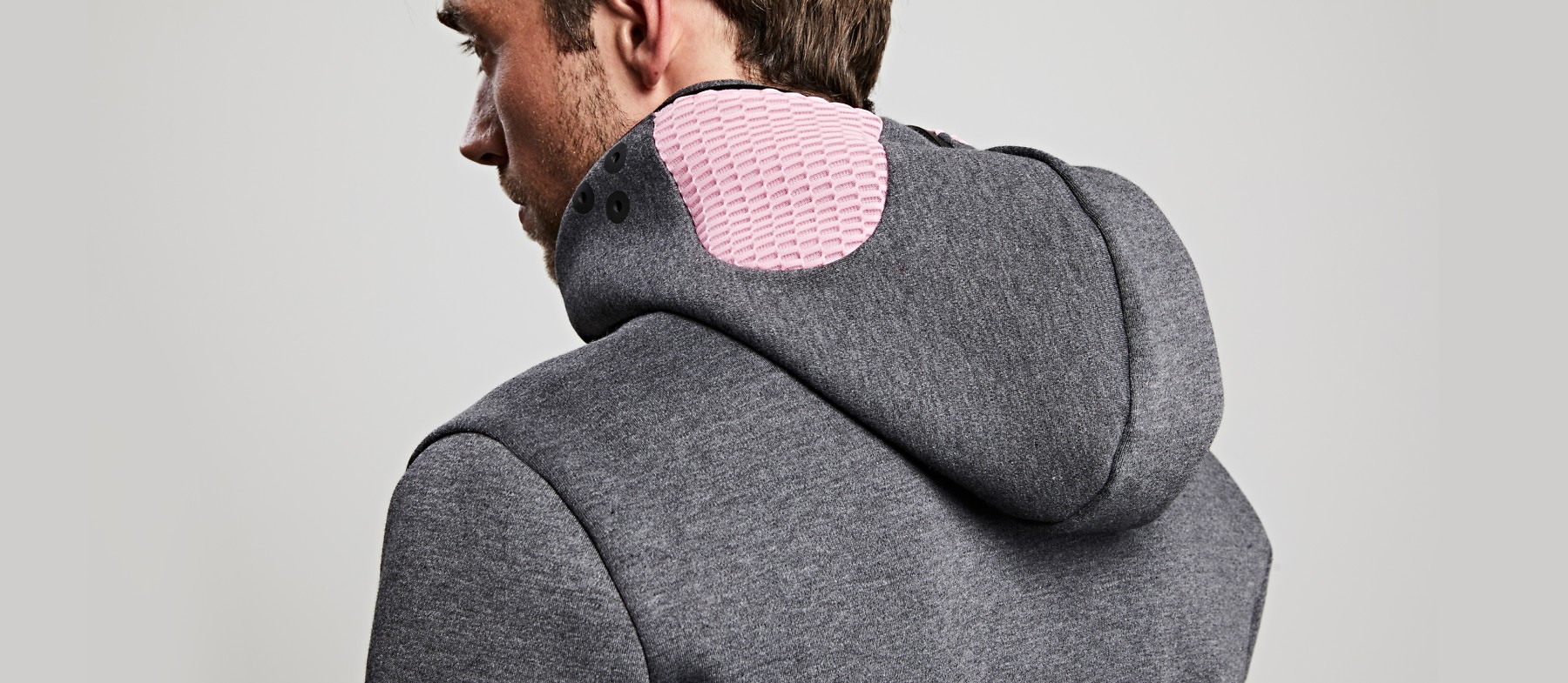Relaxation Hoodie je kot izolacijski rezervoar, ki ga vzamete s seboj, kamorkoli se odpravite. Brez tehnologije in posebnega napora jopo preprosto z zadrgo zaprete, vključno z glavo, in se odklopite od vsega. Tisto, kar to jopo naredi posebno, je roza vizor (roza krog okoli oči), ki reproducira barvo tako, da pogled pred vašimi očmi postane rožnat.