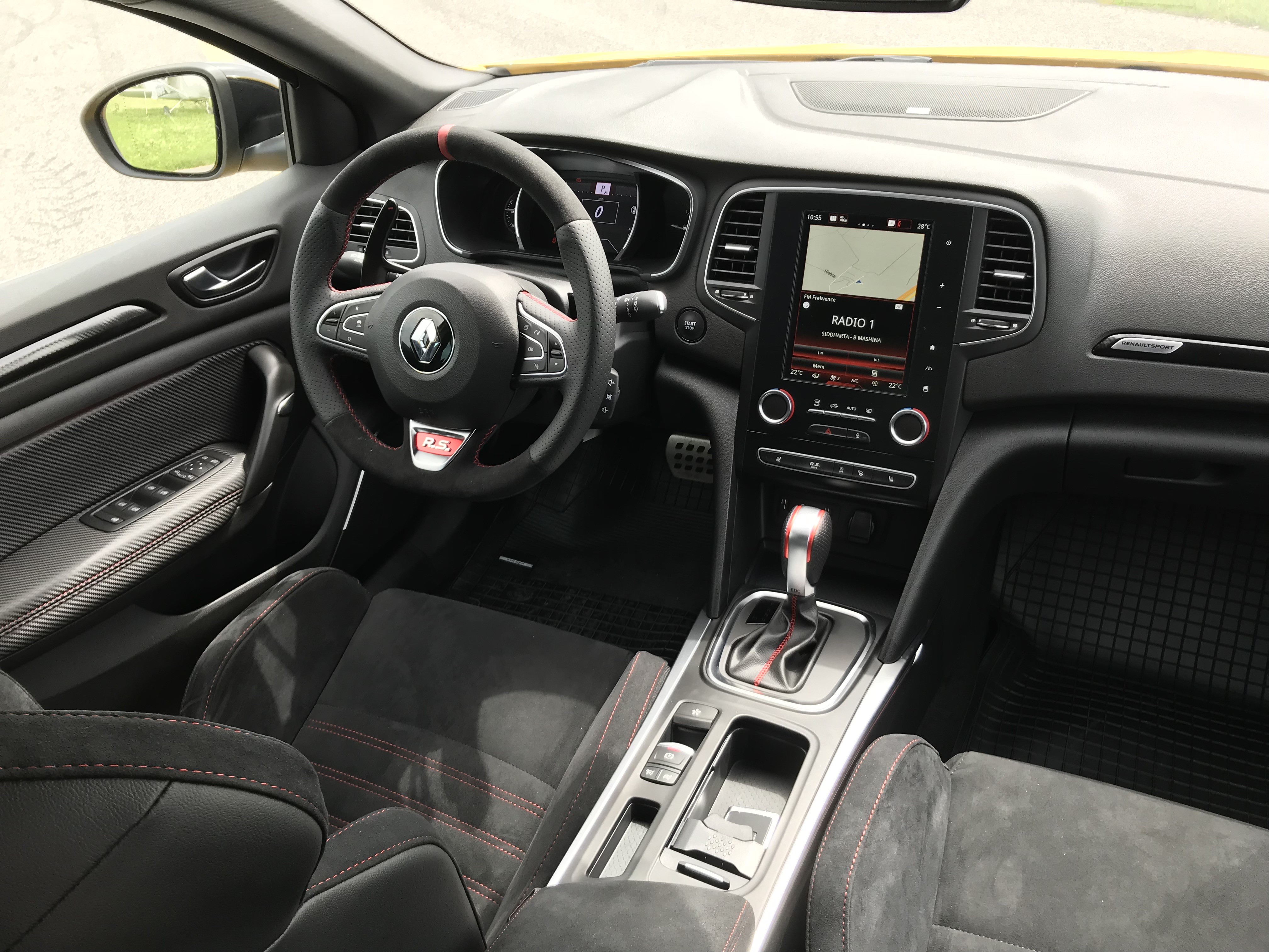 Notranjost je poudarjena s kontrastom med rdečo in črno barvo, površine, prekrite z alkantaro, pa pričajo o Meganovi športnosti. Udobno sedenje in oporo med dinamično vožnjo zagotavljajo školjkasti športni sedeži, od jeseni dalje pa si bo mogoče omisliti tudi športne sedeže podjetja Recaro. Med pametno tehnologijo, ki jo najdemo v novem Meganu R.S., lahko omenimo sistem 4CONTROL. Ta povečuje udobje in agilnost, saj pri zavijanju pomaga tudi zadnji kolesni par. Tu so seveda še R.S Monitor, za spremljanje in analizo vožnje in R.S. Race, ki Megana spusti z vajeti, iz izpušnih cevi pa zadoni agresiven napev.
