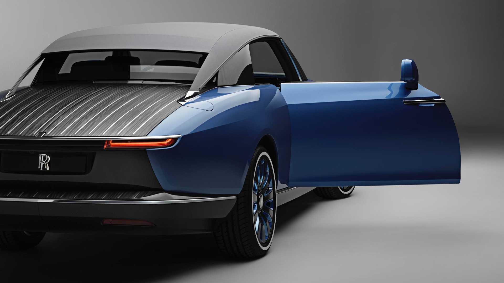 Rolls-Royce Boat Tail je unikaten avtomobil, navdih za njegovo oblikovanje pa so oblikovalci črpali iz morja. S svojo podobo in dolžino skoraj 6 metrov predstavlja prestižno jahto na kolesih, odeto v čudovito dvobarvno kombinacijo modre barve. Platnena streha je pritrjena na leseni zadnji del, ki ponazarja leseno palubo jahte in jo je mogoče popolnoma odstraniti, a brez pomoči mehanike, ki v primeru Boat Taila ni na voljo. Notranjost je prav tako odeta v dvobarvno kombinacijo modrega usnja, armaturna plošča pa je odeta v les, ki posnema tistega z zadnjega dela avtomobila. Na armaturni plošči boste med drugim našli unikatno uro, ki so jo izdelali pri Bovet 1822.
