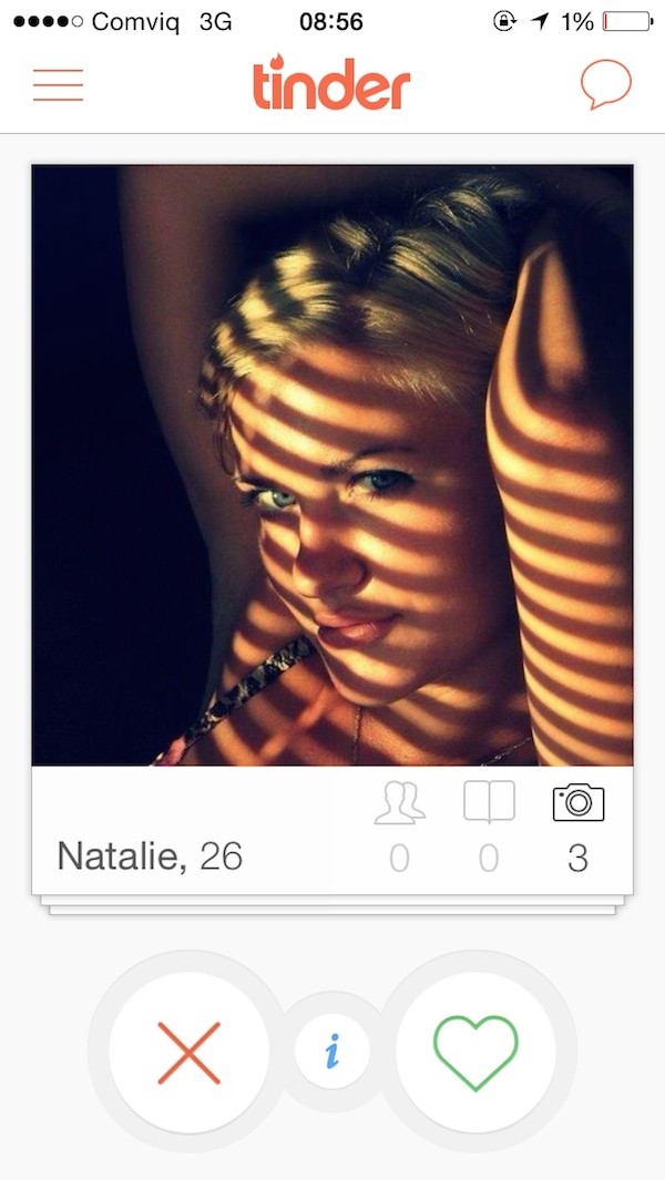 Aplikácia Tinder je zábavný spôsob, ako sa spojiť s novými a zaujímavými ľuďmi vo vašom okolí. Tinder vám ponúka fotografie rovnakého pohlavia (alebo vami zvoleného) a vy sa jednoduchým gestom „foto slide“ doľava alebo doprava rozhodnete, či sa vám daný človek páči alebo nie. Ak vám niekto „lajkuje“ späť, potom to aplikácia nazýva „zápas“. Čo vám otvára nové príležitosti na preposielanie správ a vytvára príležitosti na ďalšie. Málokedy sa aplikácii podarí zrkadliť skutočný život, v ktorom si prvý dojem o niekom vytvoríme naozaj rýchlo.