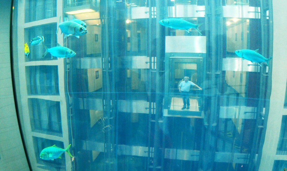 Aquadom je 25-metrové valcové akvárium, ktoré sa nachádza v Berlíne v tamojšom hoteli Radisson SAS a je považované za najväčšie akvárium v tvare valca na svete, je také veľké, že má dokonca vlastný panoramatický výťah, ktorý hostí „ponorí“ do jeho interiéru. Pláva v ňom cez 1 500 rýb, ktoré žijú vo vodnom kráľovstve, ktoré „naťahuje“ cez 950 000 litrov vody.