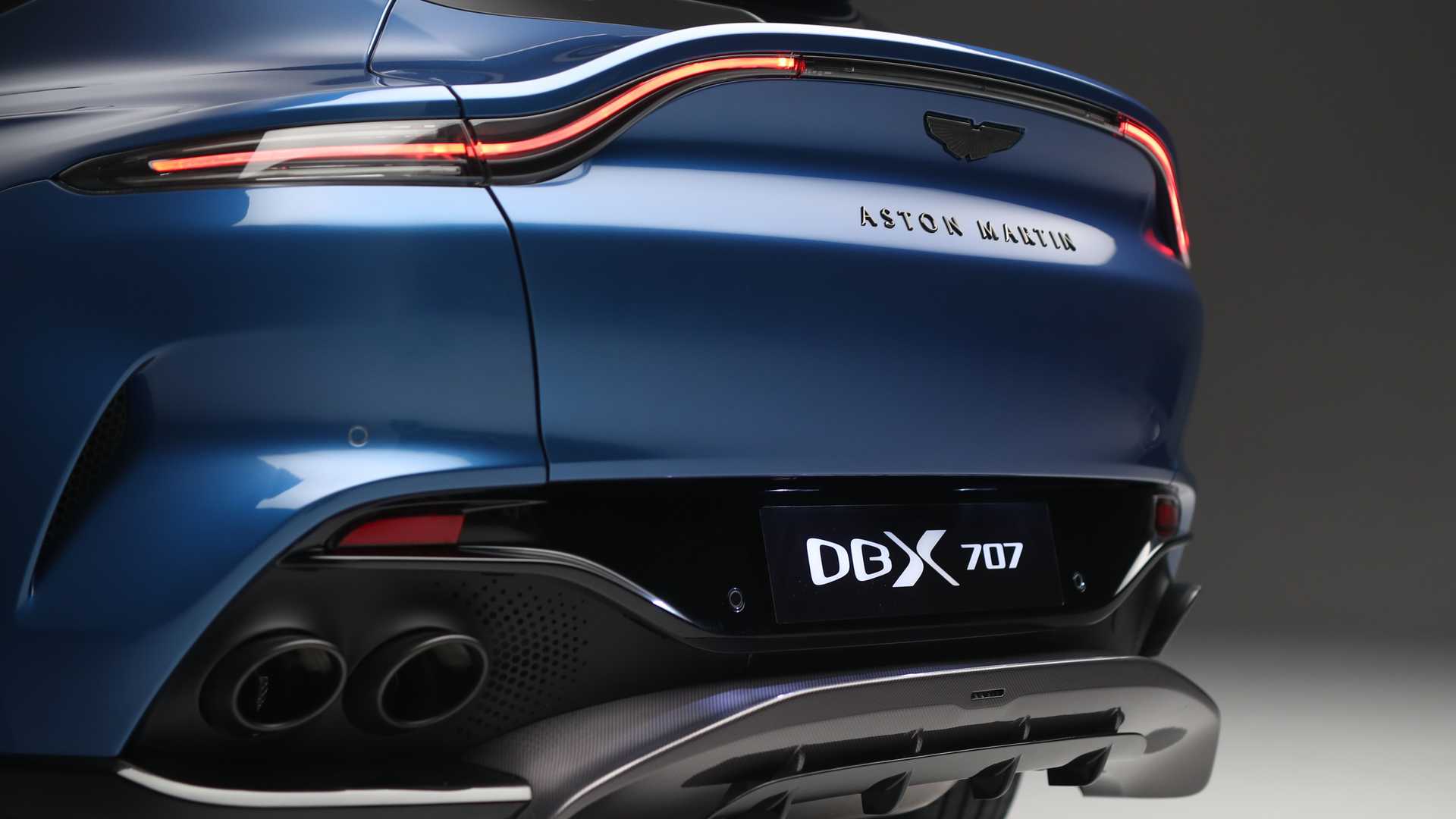 Seveda obstaja različica, ki bi jo izbral James Bond z oznako DBX707. V tej boste našli znani 4,0-litrski V8 motor, ki prilagojen tako, da ustvari nič manj kot 707 konjskih moči in 900 njutonmetrov navora. Vsem, ki se spoznate na “klasične” motorje z notranjim izgorevanjem boste nad podatkoma navdušeni. Aston Martin je v motor namestil nov par turbopolnilnikov s krogličnimi ležaji skupaj z novo kalibracijo motorja. Dodano je več zraka, ki vstopa, a hkrati zahteva boljše cevovode za njegovo odvajanje, zato je DBX707 dobil popolnoma nov aktivni izpušni sistem s štirimi izhodi. Seveda se to pozna na “zvočni” kolisi, ki jo je zmožen ustvariti V8 pod pokrovom.