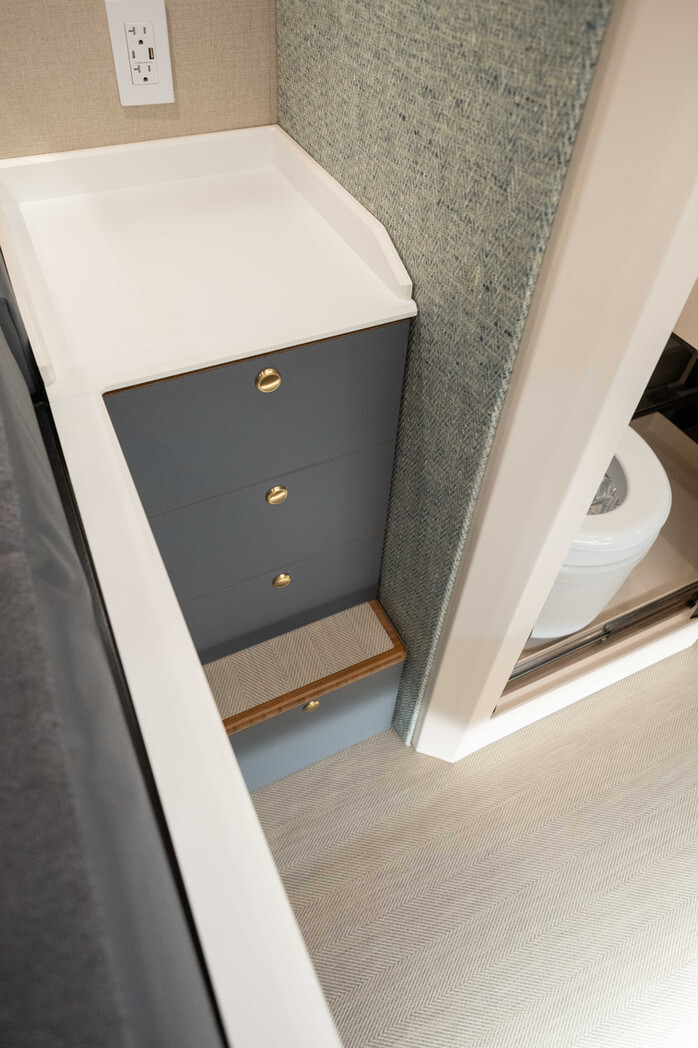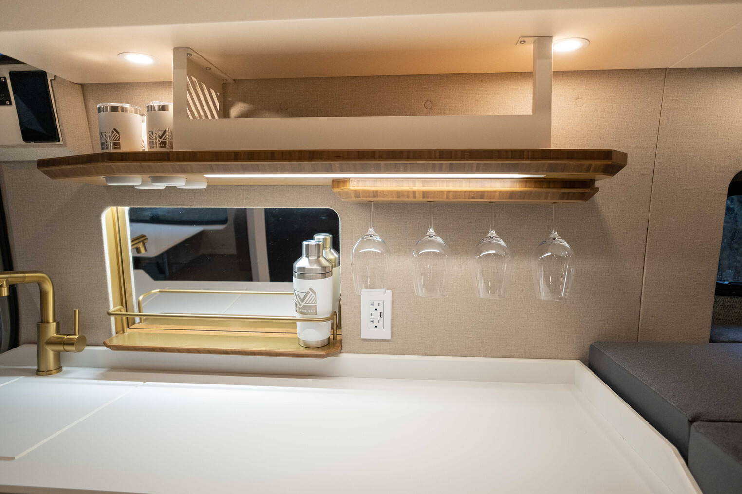 V BAM Van každý štvorcový centimeter je navrhnutý s ohľadom na pohodlie a všestrannosť. Od modulárneho usporiadania, ktoré umožňuje prispôsobiť priestor počtu cestujúcich a potrebám cesty, až po premyslene riešenú kuchyňu s dvojitým indukčným varičom, veľkou chladničkou Isotherm 130 a hlbokým drezom. Či už pripravujete jedlo alebo potrebujete viac pracovného priestoru, každý prvok je navrhnutý tak, aby maximalizoval užitočnosť a pohodlie. Zaujímavá je aj estetika, ktorá je veľmi v kontakte s momentom a trendmi. Chválime aj niektoré inovatívne detaily, ako napríklad zaujímavý stojan na poháre na víno.