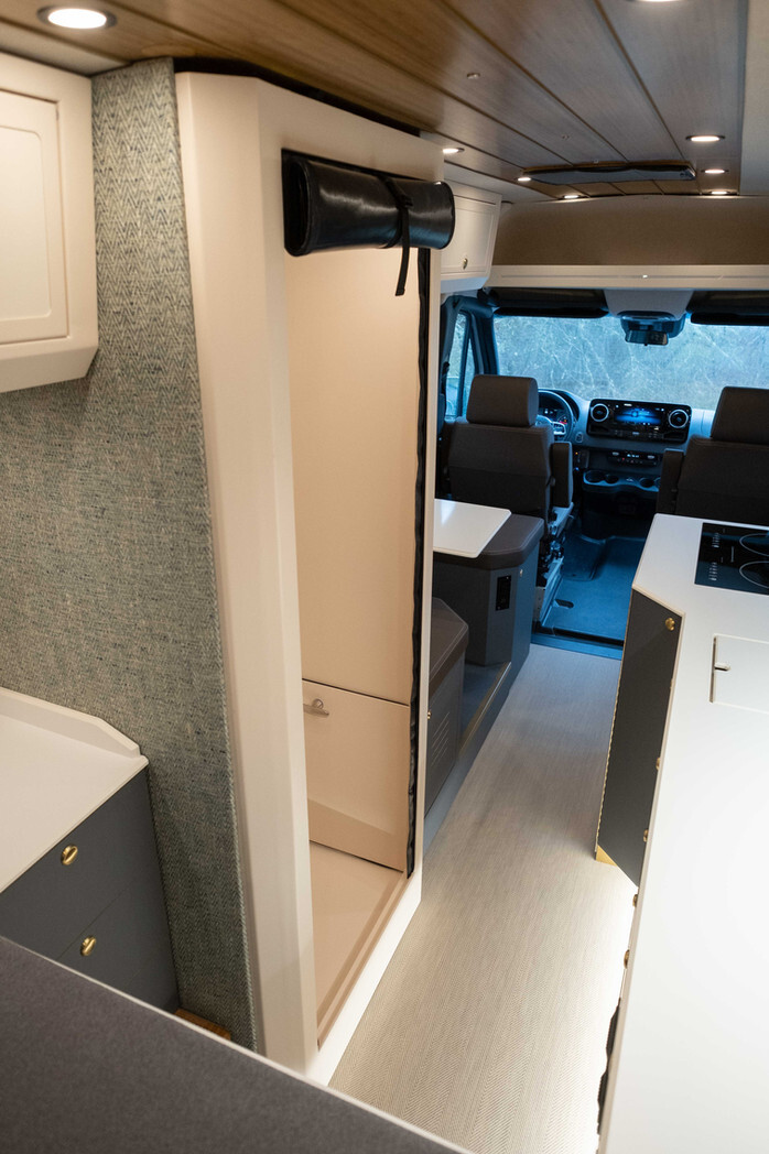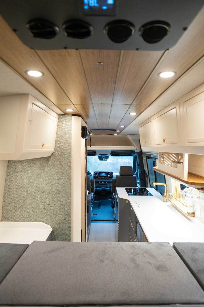 BAM Out je nielen krásny na pohľad, ale aj mimoriadne funkčný. So systémom skladovania vody s objemom 32 galónov (približne 121 litrov) a pokročilým systémom hospodárenia s odpadovou vodou umožňuje táto dodávka dlhé dobrodružstvá bez nutnosti častého hľadania zdrojov vody. Elektrický systém vybavený 10 kWh batériami a 300 W solárnymi panelmi zaisťuje, že vaše zariadenia budú vždy nabité a váš domov na kolesách bude jasný a teplý. Samozrejmosťou je „nízka“ klimatizácia na streche, ktorá zabezpečuje chladenie aj kúrenie. Pri takto veľkých batériách nemôže byť ani reči o nedostatku elektriny.