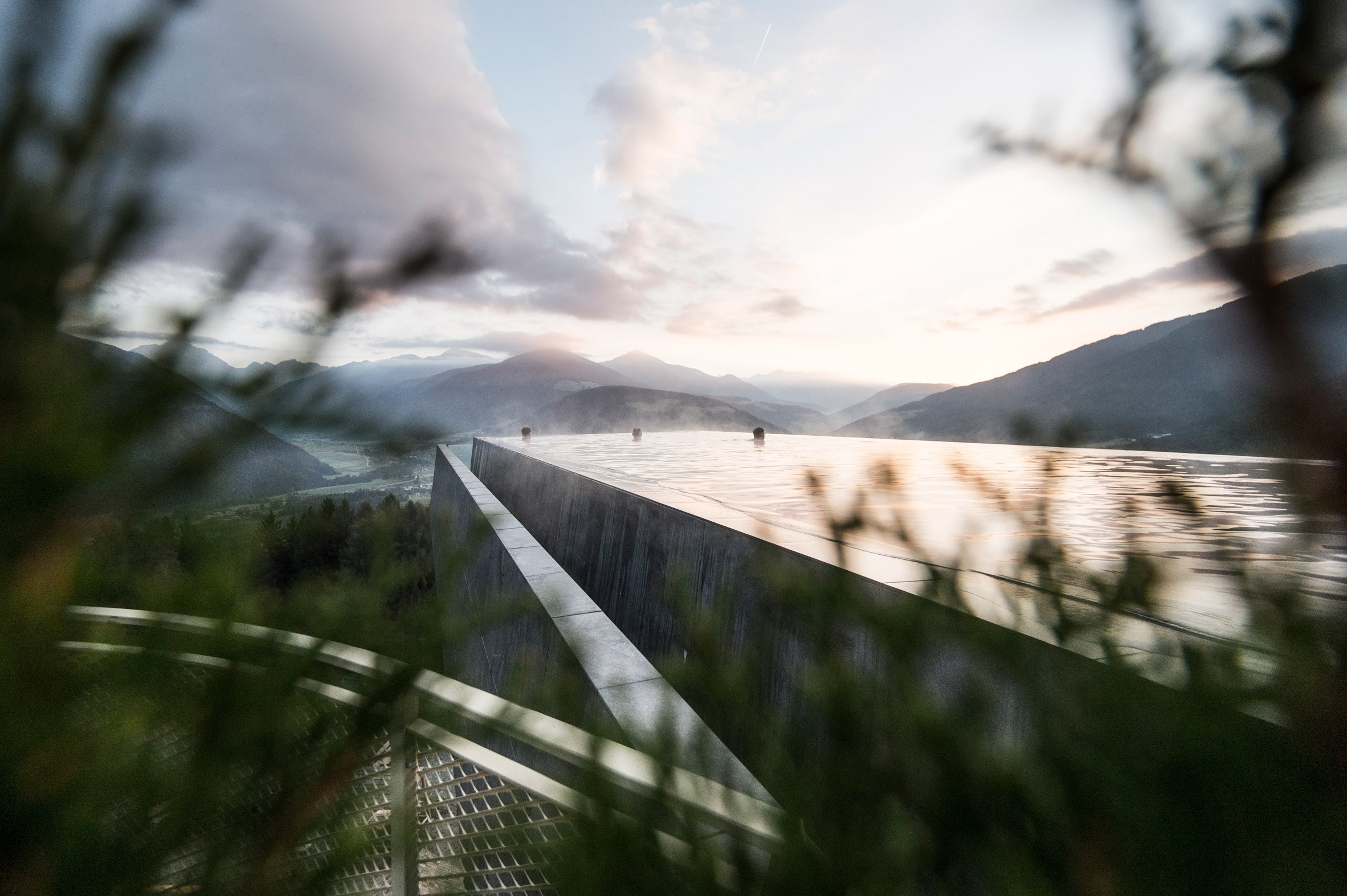 Architektonický ateliér NOAH je pre hotel Hubertus v italijanskem Kronplatzu, ki velja za priljubljeno pribežališče smučarjev in pohodnikov, izdelal previsno ploščad z zunanjim bazenom, ki ponuja prečudovit razgled na Dolomite. Kot da to ne bi bilo dovolj, ima 25-metrski bazen delno stekleno dno, kjer med plavanjem dobite občutek, da lebdite v zraku.