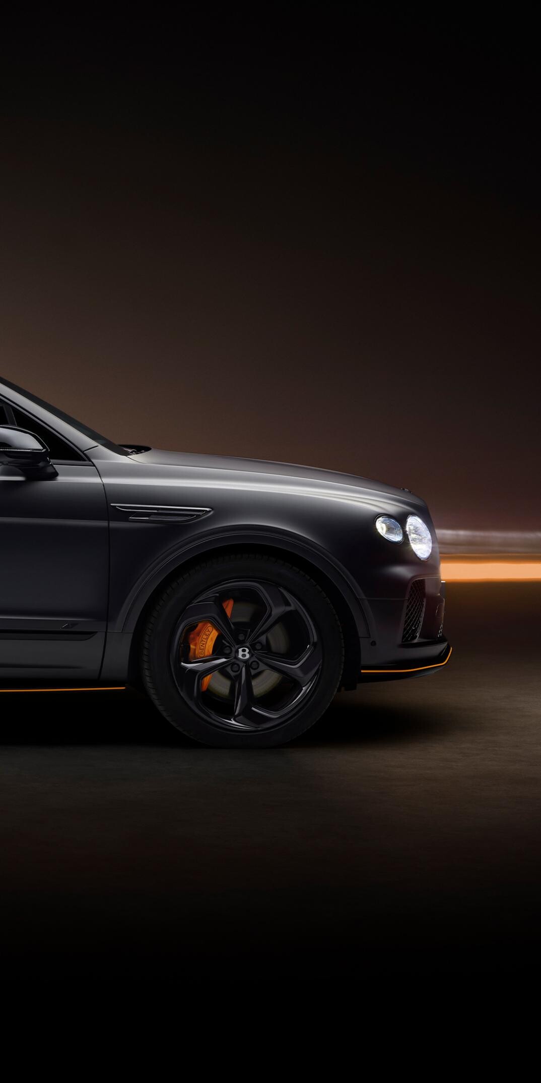 Začnime exteriérom, ktorý vás nepochybne zaujme. Bentayga S Black Edition zdôrazňuje svoju aristokratickú líniu celočiernymi krídlami Bentley, ktoré po prvý raz v histórii značky nahrádzajú tradičné strieborné odtiene. Je vylepšený výnimočnou súpravou karosérie Styling Specification, ktorá obsahuje dynamickú čiernu líniu obklopujúcu celé vozidlo. To dokonale ladí s farbou bŕzd, ktoré záhadne žiaria spod 22-palcových čiernych kolies.