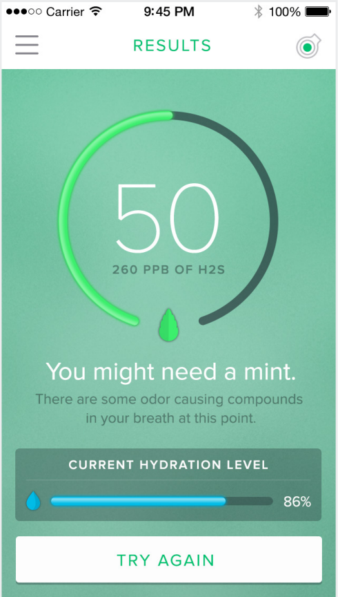 Mint je priročna napravica oziroma senzor spoločnosti Breathometer, ki ga za 12 sekund vstavimo v usta, ta pa nam prek mobilných aplikácií sporoči ali naš zadah potrebuje osvežitev. Poleg analize zraka (izračuna količino vodikovega sulfida in disulfida ter metana), s pomočjo katere odkrije tudi halitozo– kronični ustni zadah- naprava preverja tudi ali ste dovolj hidrirani, kar je sicer eden ”stricev iz ozadja”, ki povzročajo slab zadah.