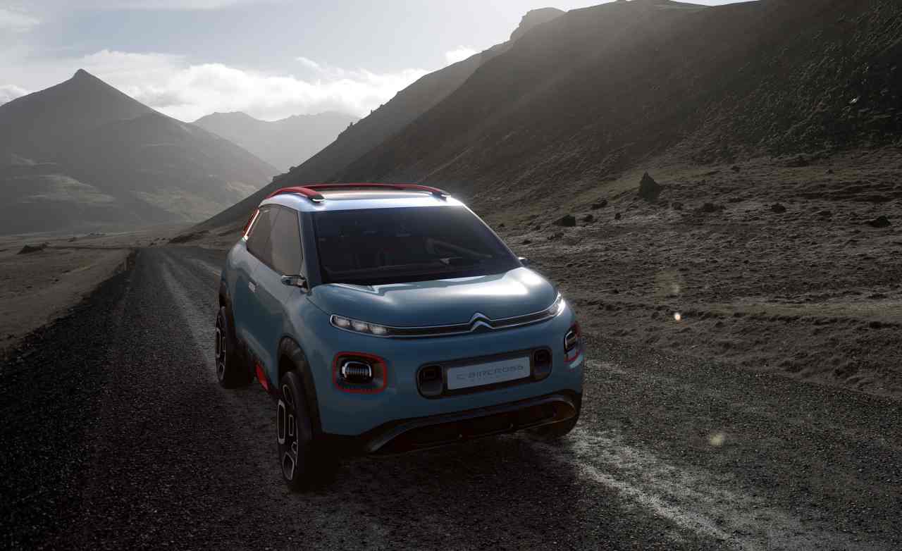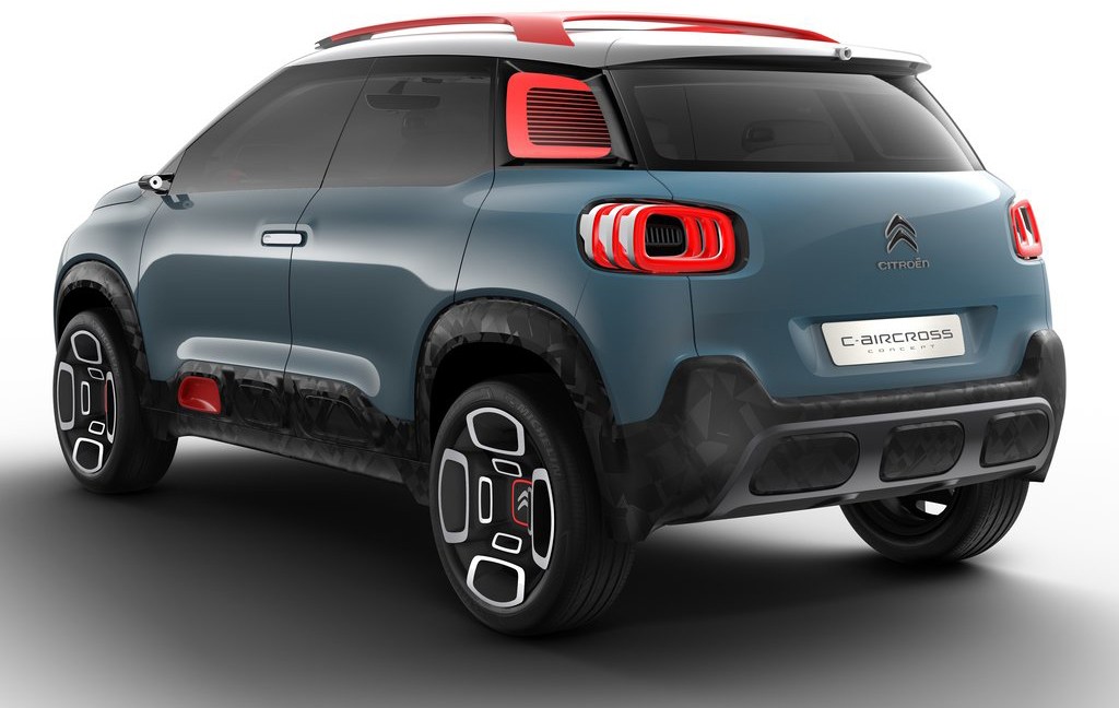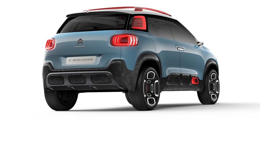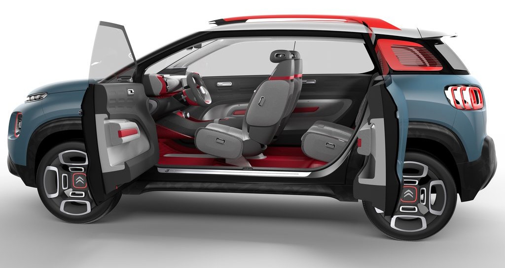 Citroën C-aircross má oproti otvárajúcim sa dverám, ktoré sa samozrejme v sériovej verzii neočakávajú. Sú určené najmä na demonštráciu priestranného interiéru a umožnenie vstupu do vyvýšené vozidloNemal by sa očakávať ani taký agresívny, no zároveň zdržanlivý vzhľad, aj keď krátka kapucňa a maskáčový vzor dobre sedia, hoci to nebude bitka na zablatenom, ale prevažne asfaltovom bojisku. O tom, že sa veľkých nebál, svedčia aj ráfiky, ktoré sú veľké ako Trumpove ruky. Stojí na 18-palcový a je oveľa ďalej od zeme ako ostatné.