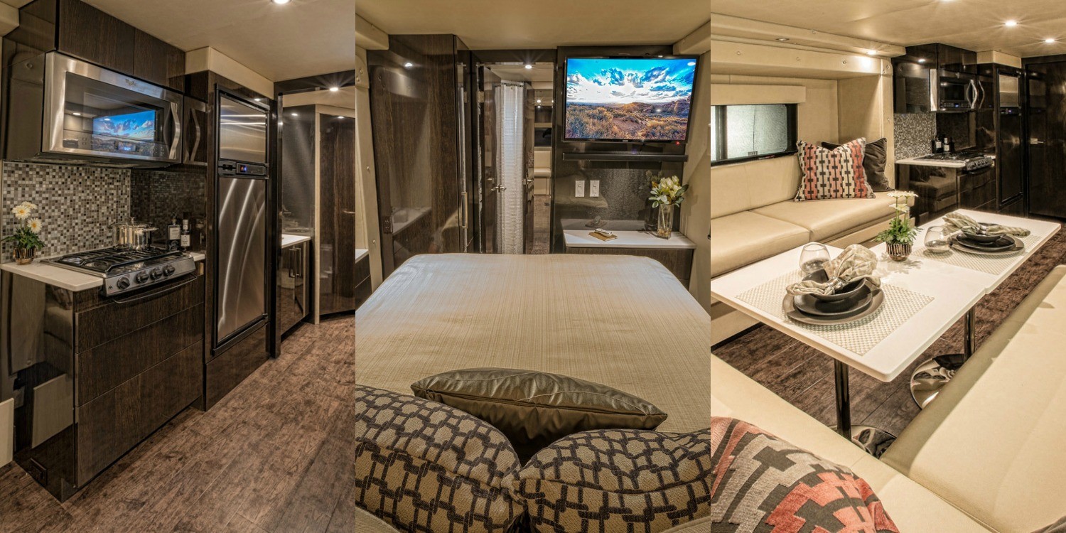 Pri prechode dovnútra Prívesy CR-1 Pozorovateľovi sa odkrýva mimoriadne prestížny interiér s použitím toho najlepšieho dreva a kože, šatníkových skríň „od steny k stene“, elektrifikovaných závesov, obrovskej kúpeľne, systému napájania pomocou slnečnej energie (solárne panely) s el. 700 wattov, tónované sklá a informačno-zábavný systém, ktorý podporuje operačné systémy Android a iOS.
