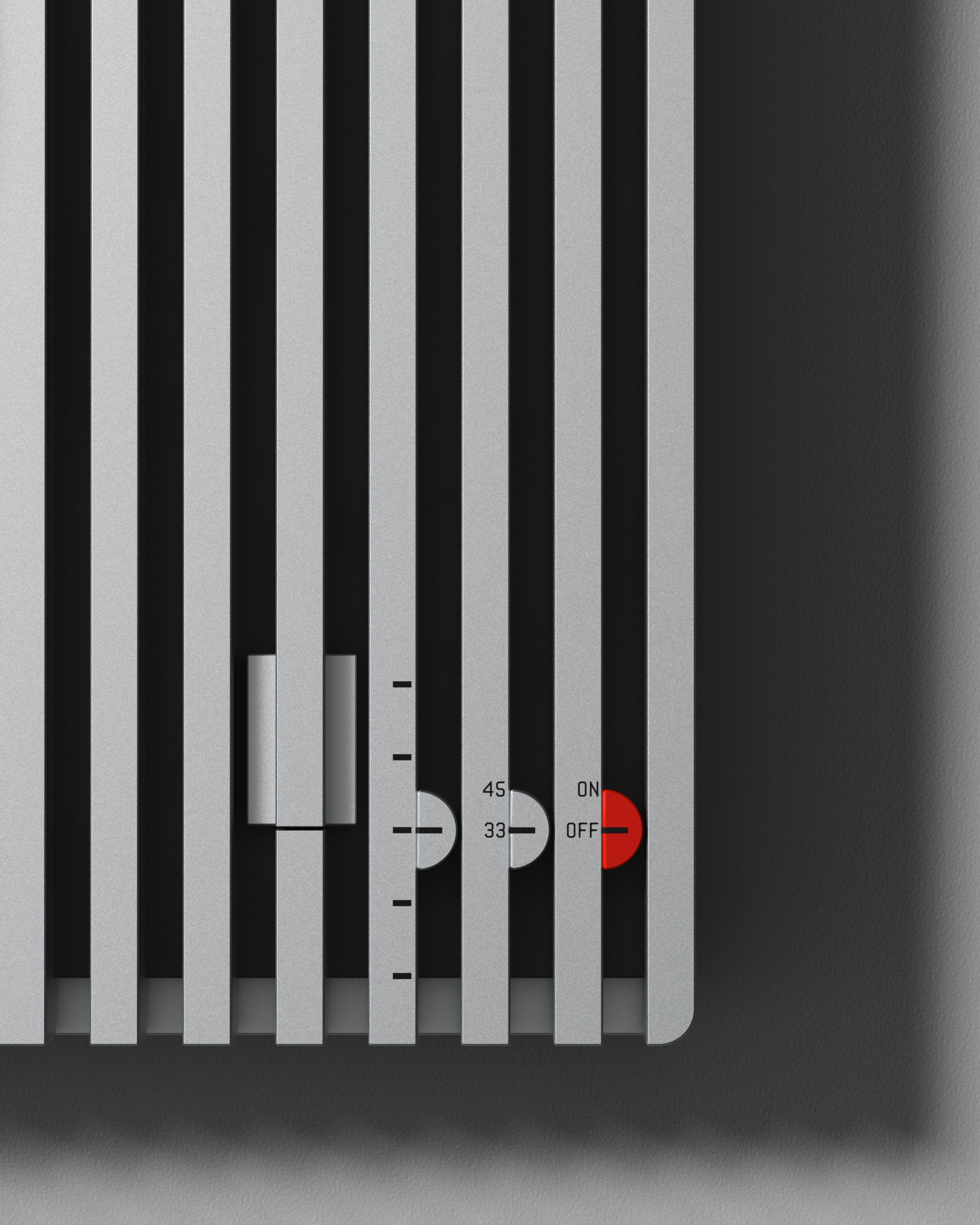 Jednou z najinovatívnejších funkcií RYTM je skrytá tónová rukoväť, ktorá sa elegantne vysunie z vertikálnych lamiel, keď je čas na prehrávanie hudby. Tieto lamelové prvky nie sú len na ozdobu; sú tiež súčasťou používateľského rozhrania, prostredníctvom ktorého spravujeme výkon, hlasitosť a rýchlosť otáčania.