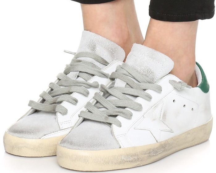 Módne tenisky Utrápená Superstar prestížne značky Zlatá hus vyzerajú ako tenisky, ktoré si obujete len vtedy, keď musíte urobiť niečo špinavé okolo domu. Dávajú dojem obnosených a špinavých tenisiek (niektoré modely sú dokonca prelepené), ktoré príliš dlho nevideli štetec a sú už dávno preč zrelý na odpis a púť do koša.