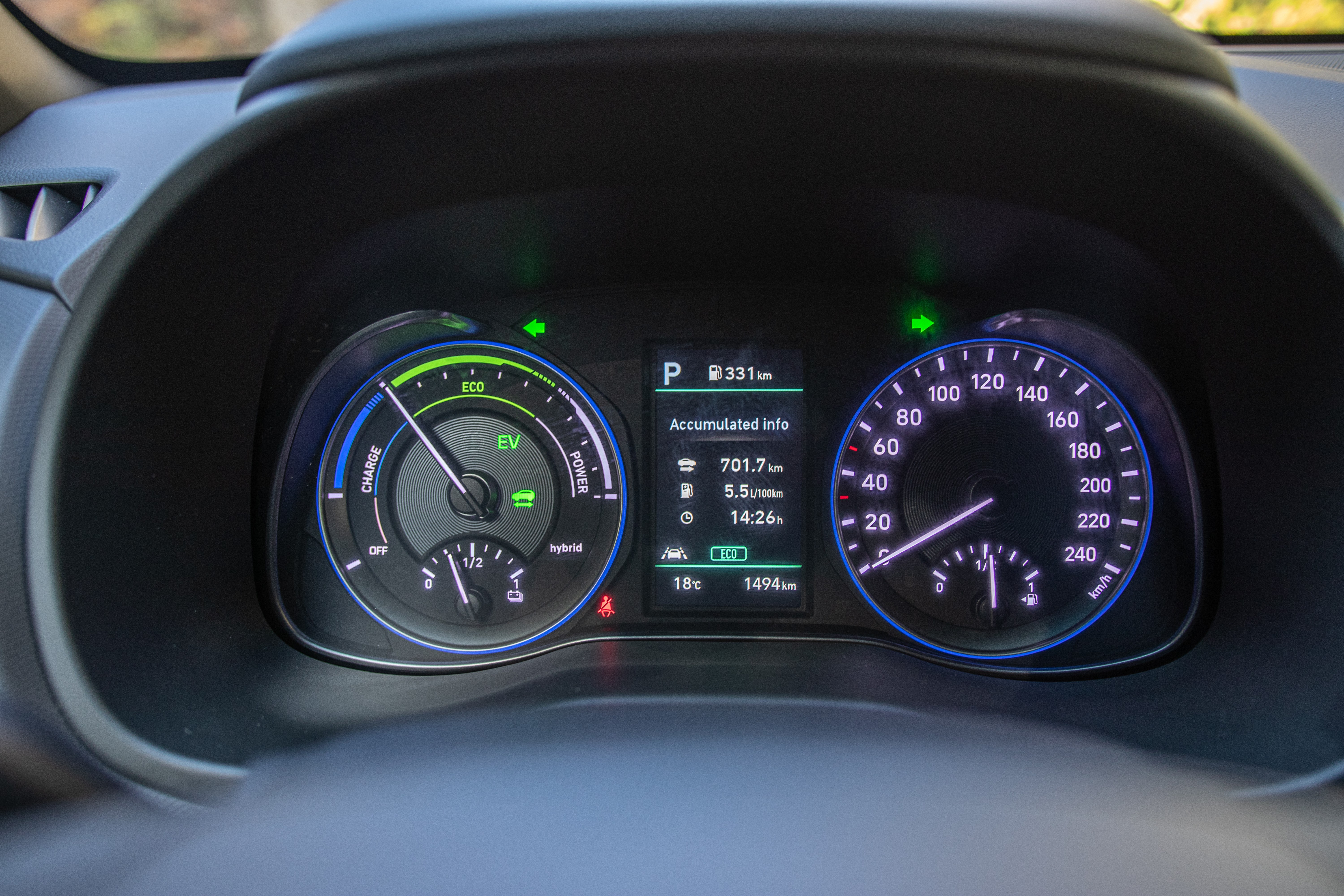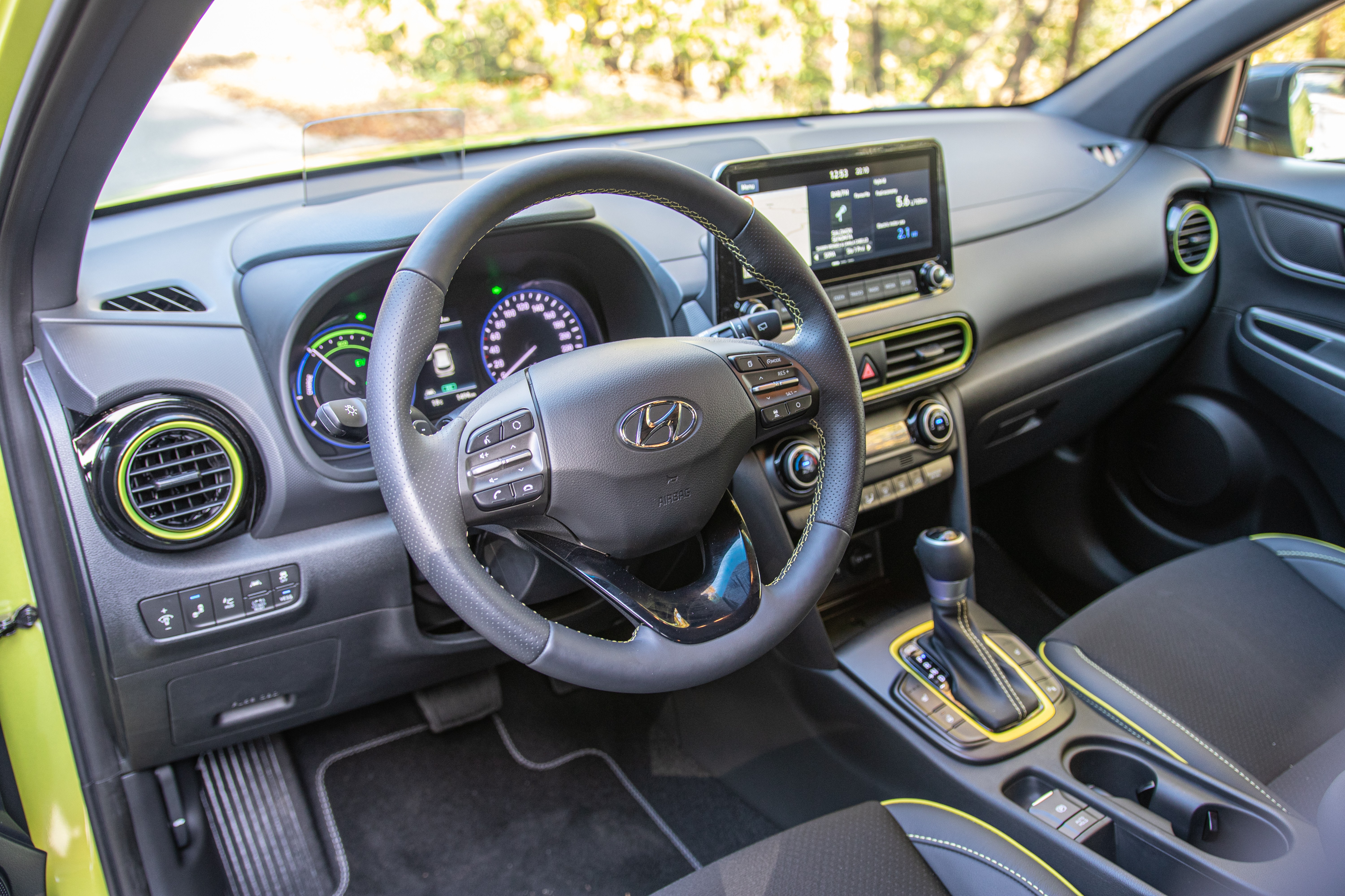 Hyundai Kona Hybrid má hybridný pohon, ktorý pozostáva z dvoch 1,6 litra GDi benzín motor, s Výkon 77,2 kW (105 k). a elektromotorom, s Výkon 32 kW (43,5 HP).. Elektrická energia na pohon elektromotora je uložená v lítium-iónové batérie s kapacitou 1,56 kWh. Celý systém sa vyvíja 103,6 kW (141 k) a zásoby 265 Nm krútiaceho momentu. Kona Hybrid je k dispozícii s 6-rýchlostný robotizované Prevodovka DCT s pádlami. V režime môžete iba vy EKO používame na regulácia silu rekuperačné brzdenie, v režime SPORTSa používame ich na prieniku medzi prevodovými stupňami.
