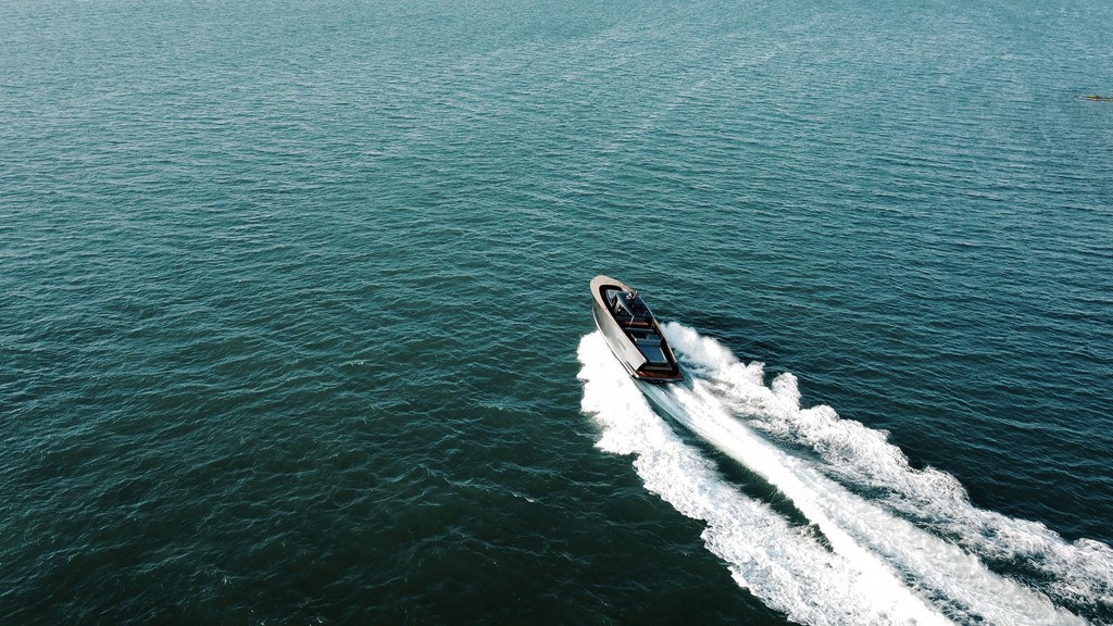 Predná časť jachty sa strmo dvíha z vody a vyzerá z nej dosť vysoko. V dôsledku toho sa s ním aj ľahšie zaobchádza väčšie vlny a je tak rýchlejší aj v horších plavebných podmienkach. Trup má vysoký tvar V a okolo provy je drevený okraj, ktorý pôsobí ako akýsi úzky chodník. Kabína nie je prehnane veľká a je tiež in minimalistický štýl, no stále je tu dosť miesta na pohodlnú spálňu a dostatočne veľkú kúpeľňu. Pri kúpe sa budúci majiteľ môže rozhodnúť akúkoľvek farbu telaa všetky ostatné povrchy sú dostupné z ľubovoľného drevo. O pohon sa starajú dvaja motora Volvo IPS 600 a s ich pomocou dosiahne jachta maximálnu rýchlosť 38 uzlov. Na palube je dostatok paliva 300 námorných míľ.