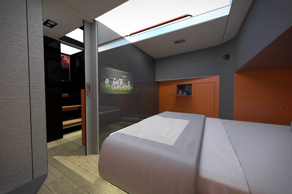 Pod palubo boste našli še več udobja. Na voljo imamo tri spálne, ki so okoli osrednjega salona, ki je opremljen z usnjem Foglizzo in marmornimi prevlekami. Na voljo je še kúpeľňa, ki nam na daljših plovbah omogoča popolnoma enako udobje, kot bi ga pričakovali v hotel. Mazu 52HT bo tako idealna sopotnica v prihajajočih vročih poletnih dneh.
