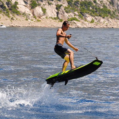 JetSurf sa kĺže po vodnej hladine rýchlosťou dobrých 55 km/h, čo je na súši nevídané, no na vode je to naozaj výnimočné. Hračka pre skutočných mužov, ktorí nechcú v lete len ležať na pláži, ale potrebujú spoločnosť skvelej vychytávky.