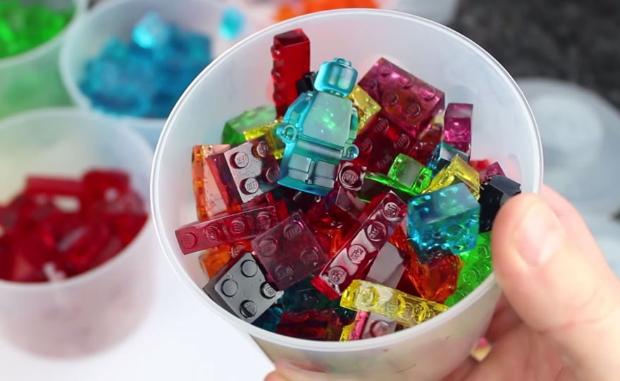 Kako pripravite Lego gumijaste bonbone ”Kralj naključnih stvari” razloži na svojem YouTube kanalu, za izdelavo pa potrebujete vsega tri sestavine. Mrzlo vodo, koruzni sirup in želatino (z ali brez okusa). Aja, pa silikonski kalup, ki pa ga lahko izdelate sami (navodila najdete tu) ali že narejenega najdete na Amazon.