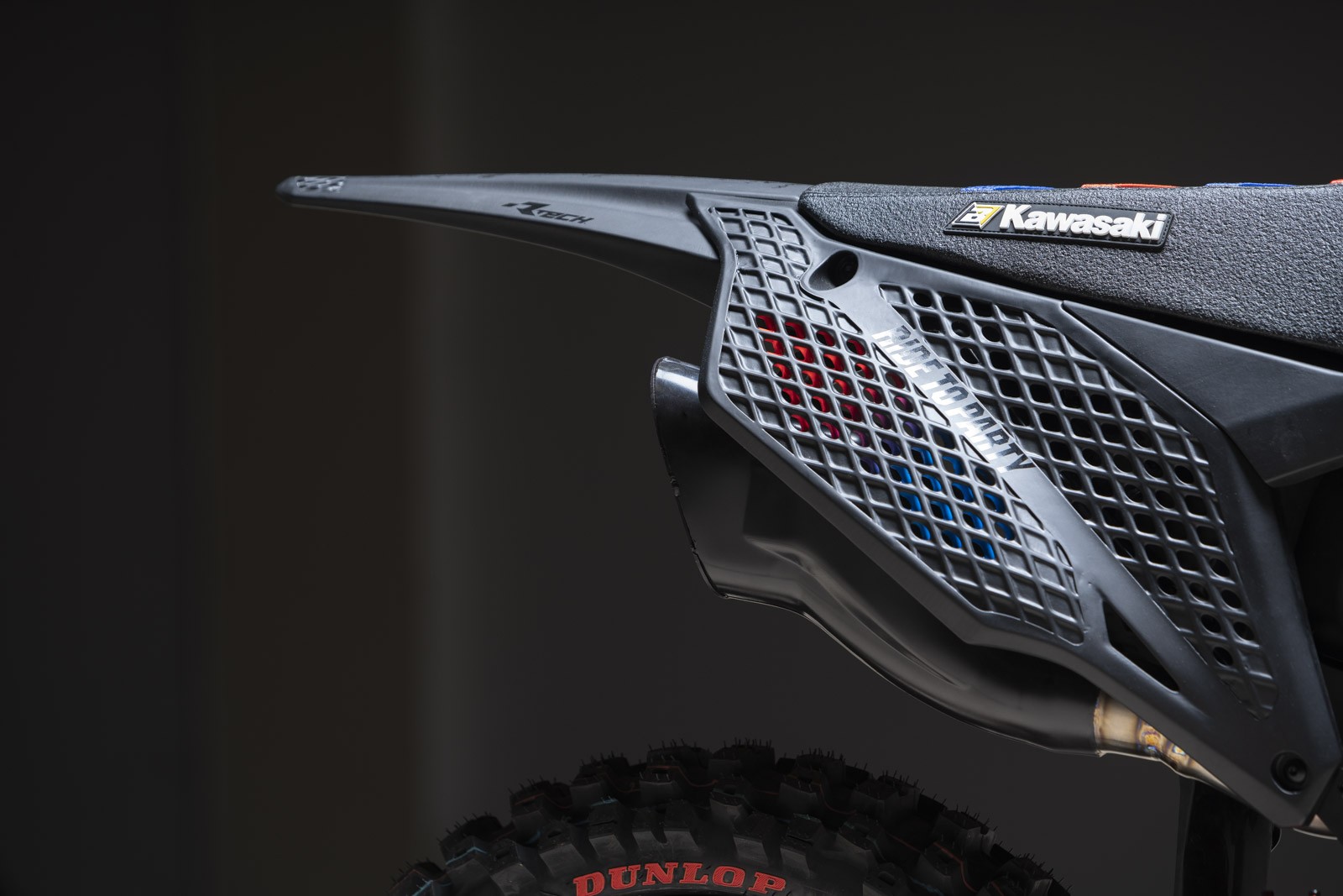 Ko se združita domišljija bivšega profesionalnega motokrosista Alvara Del Farra in tehnologija 3D-tiskanja, nastane motokros zverina Kawasaki KX 450 3D Core by Del Farra – 'kroska' ima poslikavo modre in rdeče barve, ki ponazarjata arterije in aorte 3D-natisnjene zveri.