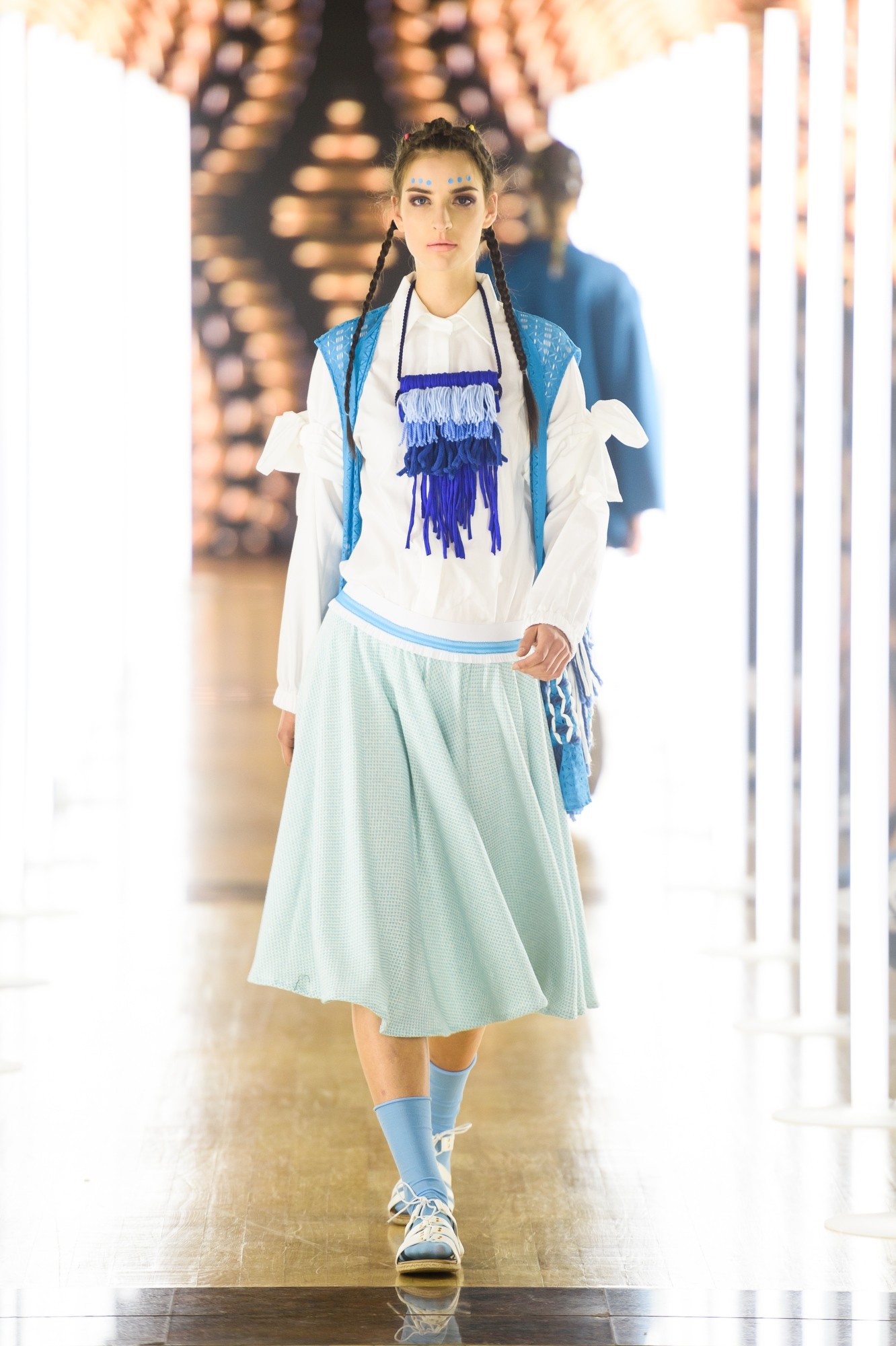 "Aisha. Žena, život, byť nažive. Kolekcia Aisha vyzdvihuje africké ženy a ich každodenné boje za rodovú rovnosť. Základným východiskom je otázka identity a postavenia žien v Afrike a ich dôkaz proti mužskému pohlaviu. Hľadanie významu a symbolov ma priviedlo ku kombinovaniu rôznych farieb, vzorov a textúr, s veľkým dôrazom na materiály. Kolekcia je viac zameraná na textilný dizajn.“ Tina Gorkič ako študentka Prírodovedeckej a technologickej fakulty v Ľubľane vyhrala prezentačnú cenu na nasledujúcom týždni módy na aprílovom LJFW, a tak tentoraz predstavila vlastnú kolekciu.
