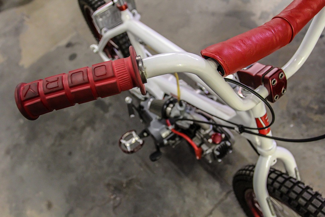 K tomu všetkému ešte pridali sedadlo BMX bicykle, vhodné rukoväte a pedále, a nakoniec lúčové ráfiky. Hotový produkt určite splnil všetky očakávania, pretože veľmi pripomínal bicykel BMX. Roztomilá motorka má veľký motor 110 kubických centimetrov, a spĺňa všetky požadované cestné kritériá pre neho registrácia. Honda 'Redline' bola vydražená na online portáli eBay, no žiaľ, podľa posledných informácií už má nového majiteľa.