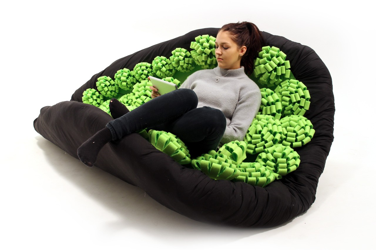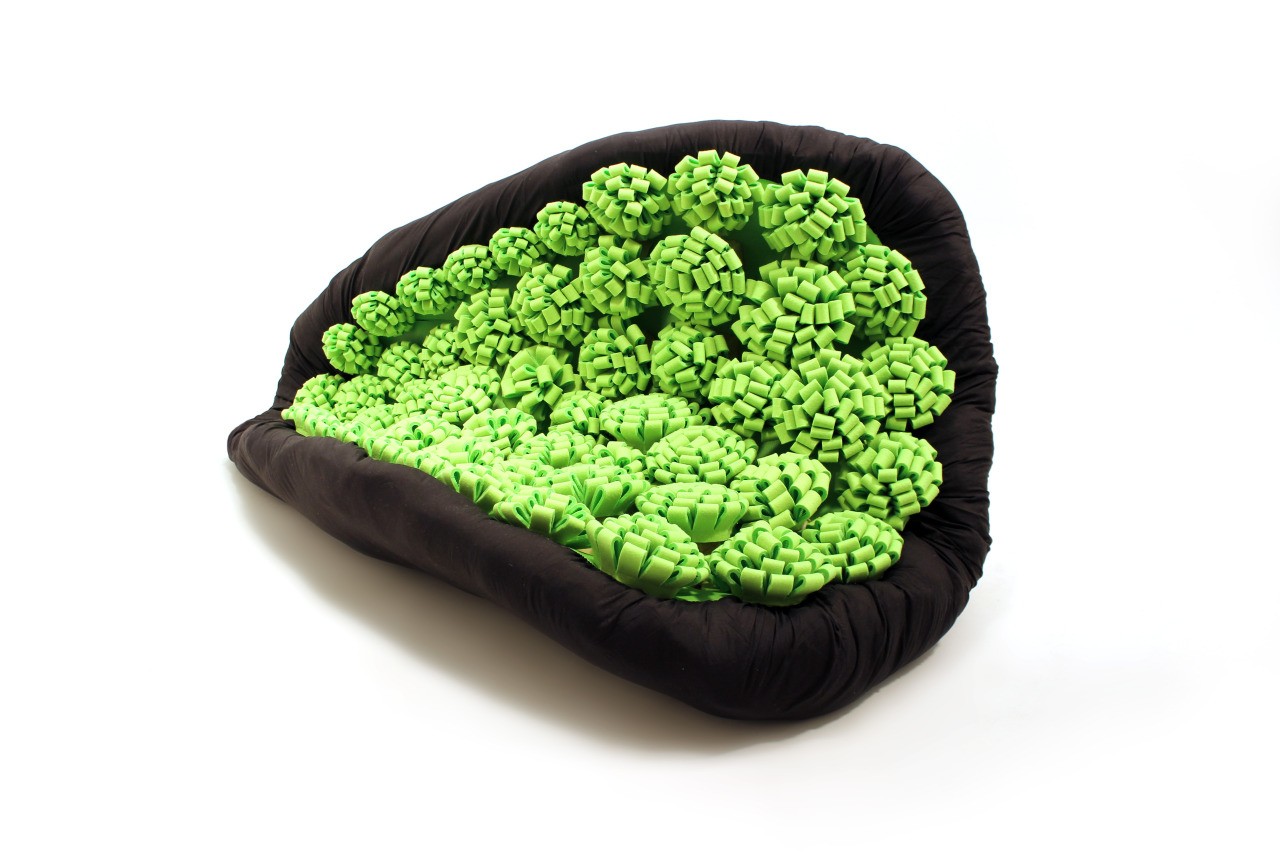 Zvláštnosťou sedačky je jej povrch, ktorý je posypané mäkkým materiálom v podobe kvetov, ktoré slúžia ako vankúše, do ktorých sa telo ponorí. Môžete si sadnúť, alebo môžete polkruhové kreslo premeniť na dokonalý relaxačný kútik.