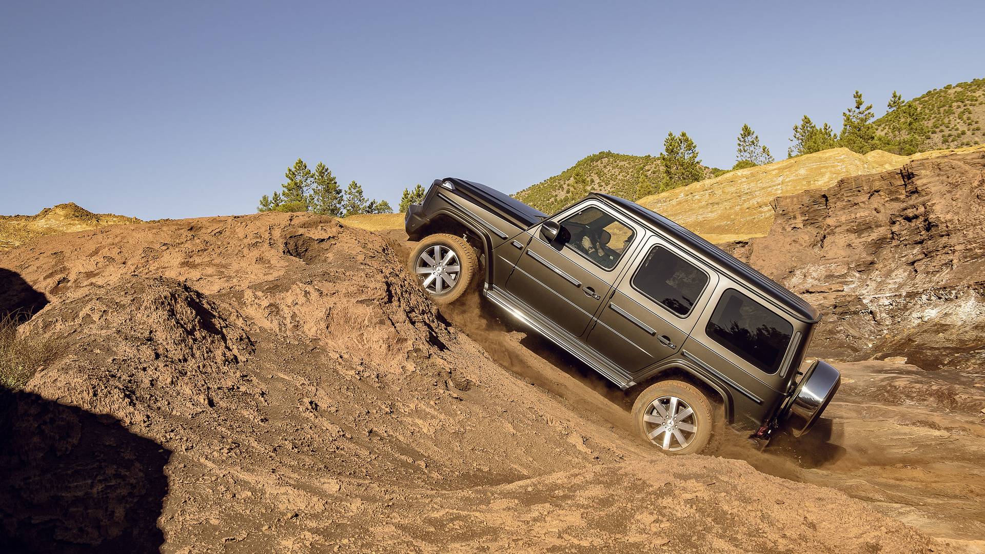 Nenechajte sa oklamať všetkým tým extra luxusom triedy G. Mercedes-Benz G zostáva jedným z lepšie SUV a má hlboko v DNA jazdu v teréne. Stále ho máme k dispozícii 3 nezávislé uzávierky diferenciálu, reduktor a ďalej novo navrhnutý podvozokPredné zavesenie kolies je teraz nezávislé, čo znamená, že jazda na rovných cestách bude citeľne plynulejšia. pohodlnejšie, ale na zemi nebudú žiadne badateľné zmeny. Vjazdové, výjazdové a ostatné uhly sa v priemere zväčšili najmenej o 1° a zväčšila sa aj hĺbka vody, cez ktorú sa Mercedes-Benz G prebrodí. Tzv. Jazdný režim G-Mode, ktorý je prispôsobený na jazdu v teréne a podľa toho upravuje prevodové stupne, odozvu plynového pedálu, podvozok a ďalšie prvky potrebné pre jazdu v teréne.