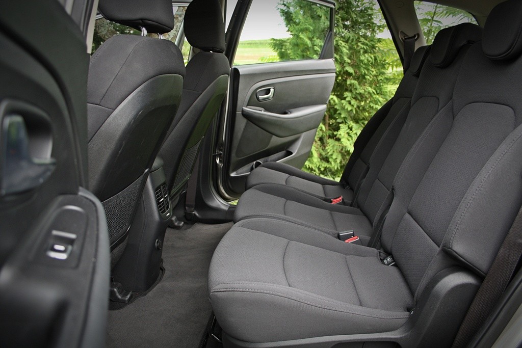 Počet zásuviek a iných odkladacích plôch je priemerný, no všetky sú užitočné a pohodlné. Centrálna obrazovka je založená na tom, že vo vnútri „skrýva“ obrazovku parkovacie kamery, priemernej veľkosti, no zobrazenie diania za vozidlom je úplne "ok". Kamera má aj zadných parkovacích asistentov do spoločnosti, takže by ste nemali mať zadné nárazníky, no viditeľnosť do strán (dopredu aj dozadu) je kvôli objemným stĺpikom obmedzená. Samotná svetlosť kabíny je vďaka zmenšeniu bočných okien smerom dozadu priemernejšia a pre tých, ktorým to vadí, je v zozname príplatok. panoramatická strecha. V druhom rade pasažierov vítajú tri samostatné sedadlá, ktoré sú ľahko posúvateľné a to isté platí aj o sklápaní iba týchto. Vzhľadom na jednopriestorové prevedenie mi vadí len fakt, že stredové sedadlo nemá kotviaci bod isofix. V podlahe sú aj kryté zásuvky, no chýbajú stolíky na operadlách predných sedadiel.