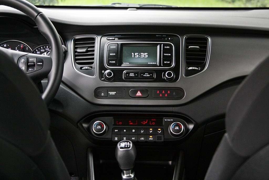 Interiér získal asi toľko ako exteriér, čo znamená, že pasažierov víta moderná palubná doska, s peknými detailmi a kvalitnými materiálmi. Možno je to len prvýkrát pre odtieň čiernej a rôzne odtiene sivej, no v tomto segmente je farebná hravosť skôr výnimkou ako pravidlom. Volant je krásny na pohľad aj na dotyk, vítaný doplnok systém nastavenia tuhosti volantu, ktorý ponúka tri režimy, no rozdielov medzi nimi je menší, ako sme čakali. Tlačidlá naň sú ako mnohé iné roztrúsené po volante a na to, že tlačidiel je pomerne veľa a kde sa vlastne každé nachádza, si rýchlo zvyknete. Len tempomat by mohol byť digitálny a aj ten v carens reaguje trochu drsne.