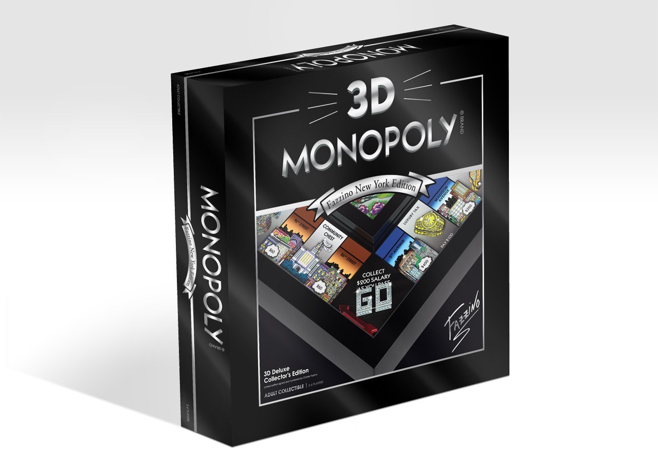 Monopoly 3D je izdelan v samo 2000 enotah, katera cena je 500 ameriških dolarjev. Igra je narejena na leseni plošči, na kateri so igralne “parcele” New Yorka. Vsaka igralna figura je ročno narejena iz lesa. Igra je pokrita s oštevilčenim steklom in podpisana s strani avtorja in oblikovalca Charlesa Fazzina.