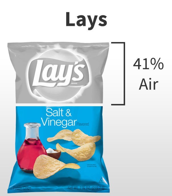 Nie je žiadnym tajomstvom, že vrečka čipsa napolnjena tudi z zrakom, a vprašanje je, kolikšna je ta količina a katera blagovna znamka vas najbolj ‘okoli prinaša’. No, Ross Hudgens, ustanovitelj podjetja za trženje vsebin Siege Media, je našel odgovor na vprašanja.