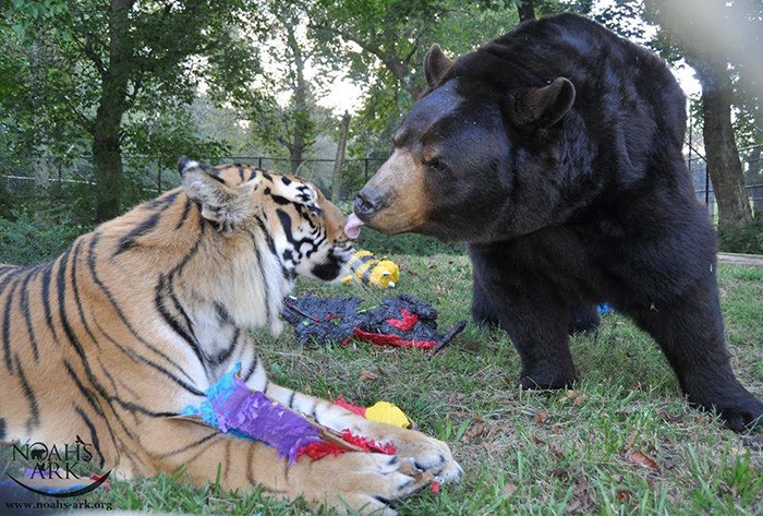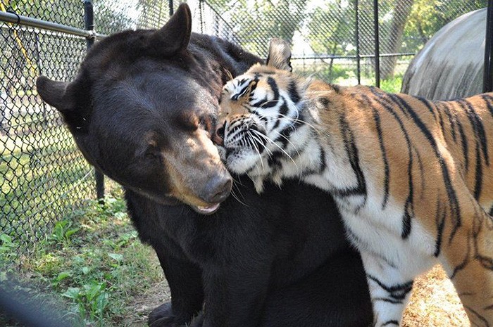 V americkom útulku pre zvieratá Noemova archa v Georgii vzniklo nezvyčajné priateľstvo, keď sa medveď, lev a tiger stali priateľmi aj napriek mnohým rozdielom. Už sme sa stretli s mnohými veľmi nezvyčajnými priateľstvami medzi zvieratami, napríklad medzi psami a slonmi, tigrami a kozami, mačkami a líškami, dokonca aj žirafami a pštrosmi. No nič nie je ani zďaleka také nezvyčajné ako priateľstvo spomínaného tria, ktoré napriek všetkému žije v harmónii.