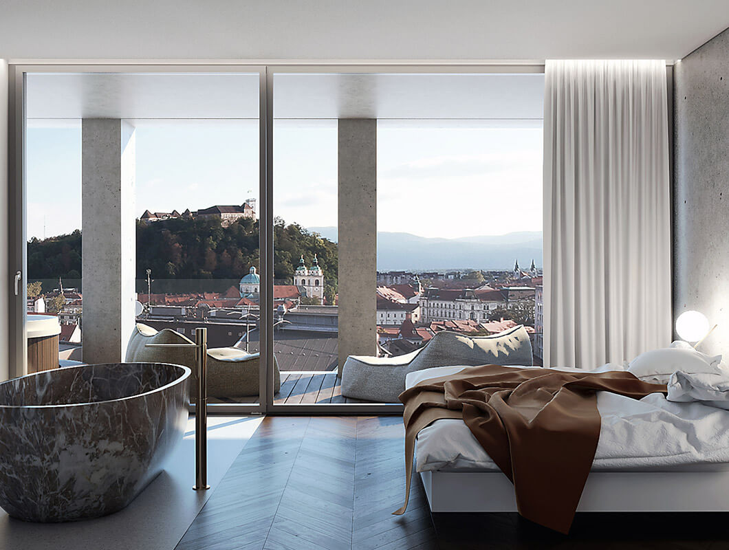 Zaujíma vás, aký bude nový luxusný butikový hotel Neuhaus, ktorý vyrastie na Kolodvorskej ulici, vedľa budovy Televízie Slovinsko? Takú prestíž ponúkne.