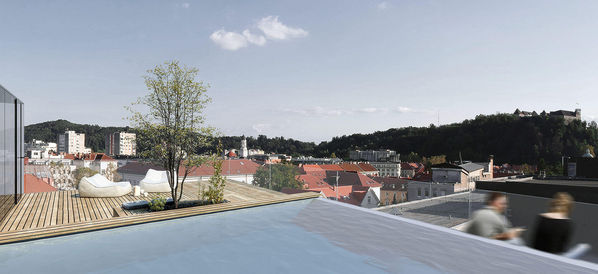 Zasnovana bodo na minimalizmu in preprostih linijah, prostostoječa kad pa bo v spalni prostor vnesla kanček dramatičnosti. Parkirišča in klet bodo varovani, na voljo bosta kolesarnica in zasebno dvigalo. Seveda ne smemo pozabiti na zunanji ogrevan masažni bazen a veliko zazelenjeno teraso. V sklopu hotela bo tudi bar/lounge, ki bo ponujal koktajle, vrhunska vina in izbrane lahke prigrizke. V etaži bo à la carte restavracija. Predvidena predaja stanovanj je 2020.