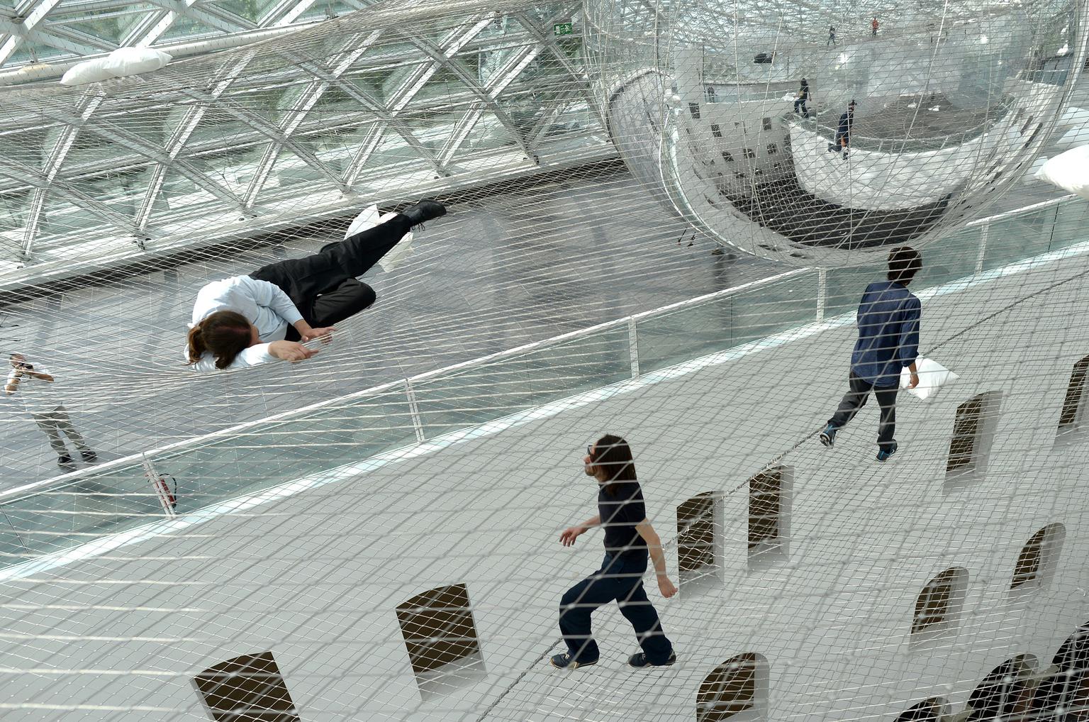 Sen o bez námahy sa vznášaní vysoko na oblohe sa konečne stal sladkou realitou. Umelec Tomás Saraceno vytvoril inštaláciu „Na obežnej dráhe“, ktorá umožňuje chodiť vo vzduchu vo výške 25 metrov.