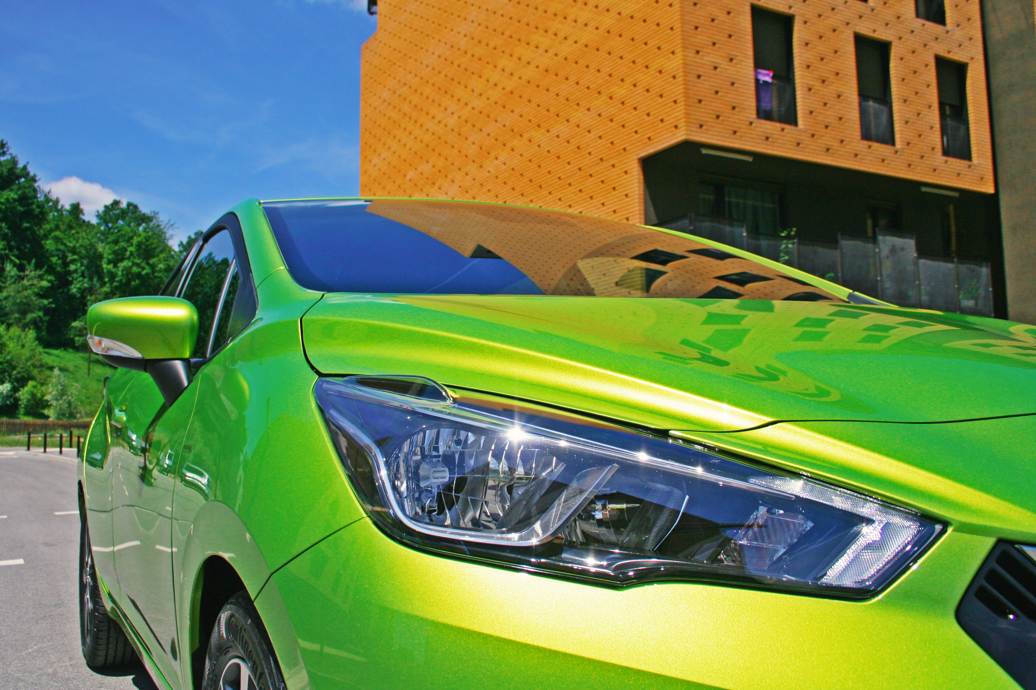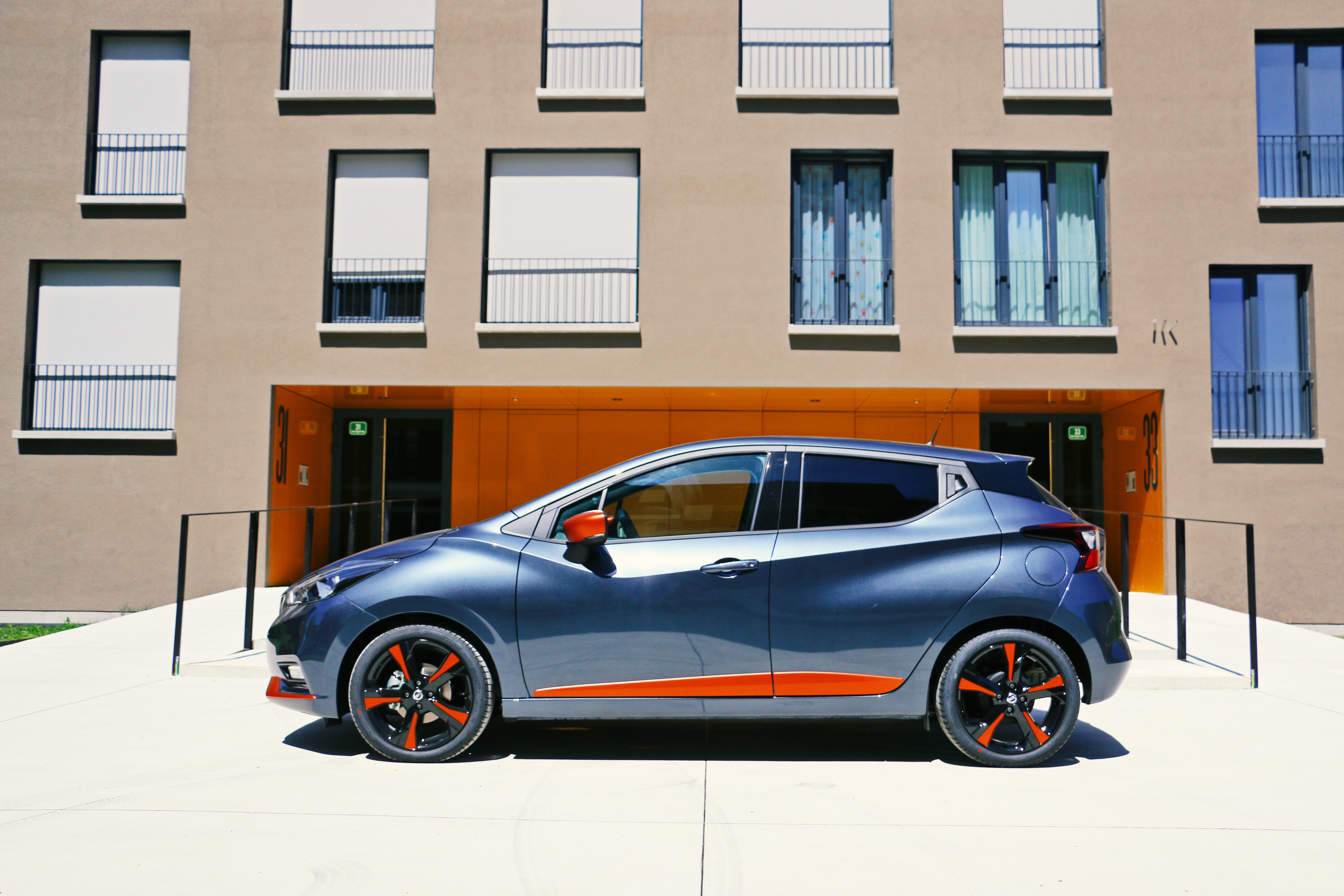 In da nova Nissan Micra ni več malčica, lahko sklepamo po njenih dimenzijah, saj se je občutno povečala v dolžino in širino. Z merami se je trdno zasidrala v segmentu B, kjer misli postati močna nasprotnica vsem rivalom. Zgodovina Micre sega v leto 1983, od takrat pa so prodali že več kot 3,3 milijona teh vozil. Novinka ima Nissanovo prednjo masko v obliki črke V in svetlobni podpis v obliki bumeranga v polni LED-tehnologiji. Črni strešni spojler in v črno pobarvana B- in C-stebrička so elementi, ki nakazujejo Micrino športový navihanost. Na voljo je 10 barv, pri čemer bodo najbolj izstopajoče na voljo le za modele Micra. Vse skupaj je možno še dodatno začini s tremi različnimi nivoji personalizacije.