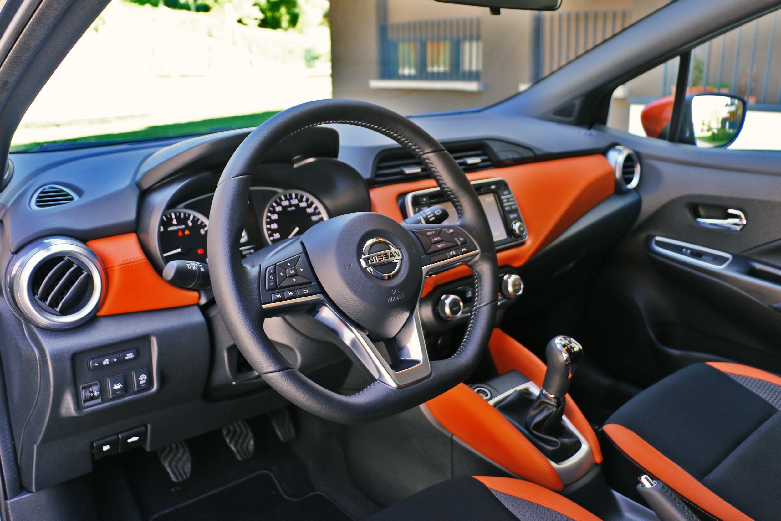Prav tako je na voljo široka ponudba personalizácia za notranjost Micr, ki je zdaj še bolj kompletný a atraktívne. Zaslediti je mogoče elemente, ki se že spogledujejo z najvišjim razredom. Položaj sedenja za volanom je nizek, s tem pa nam Micra prinaša bolj športen občutek v vožnji. Prostora je zdaj viac, zahvaljujoč večji širini, zvýšená pa se je tudi batožinový priestor, ktorý teraz má 300 litrov prostornine. Na sredini armaturne plošče je nameščen 7 palcová obrazovka na dotik, prek katerega upravljamo z navigacijo, multimedijo ali ga povežemo s pametnim telefonom. Popolna novost je osebni avdio sistem BOSÝ, ki s šestimi, strateško nameščenimi zvočniki pričara pravo glasbeno eksplozijo in s tem tudi personalizacijo glasbenega prostora.