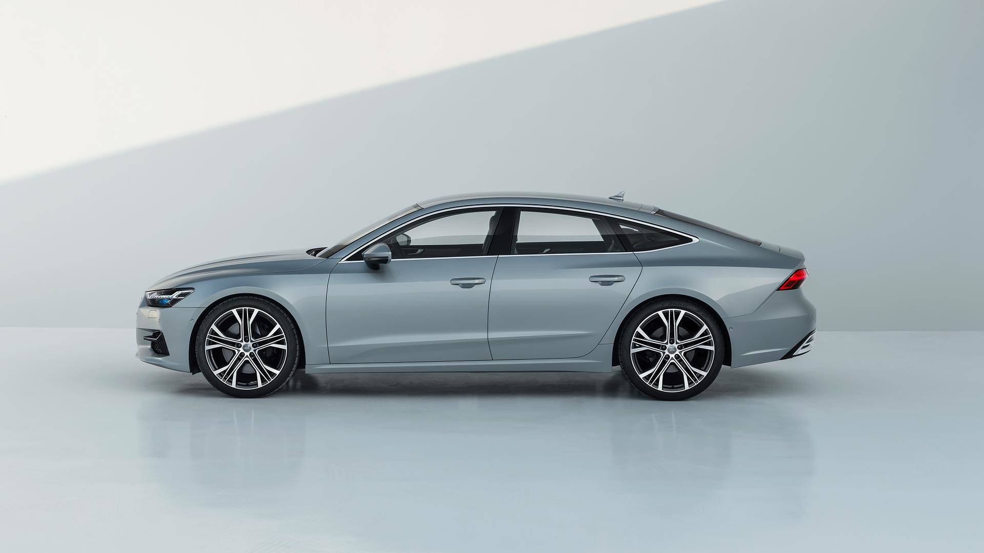 Predná časť novega Audija A7 Sportback ima nižji in širši “gril”, kar poudarja njegovo športno agresijo. Več linij se čez pokrov motorja razteza do širokih kolotekov, njegova streha pa je kot neprekinjena krivulja, ki jo ustavi šele pomični zadnji spojler. Ta se avtomatsko izvleče pri hitrosti, višji od 120 km/h. Pod njim se skriva prtljažni prostor v velikosti 535 litrov. Na zadnjem delu ne moremo mimo podolgovate luči, ki se vije čez celo širino avtomobila in je narejena iz 13 posameznih trakov LED-luči.
