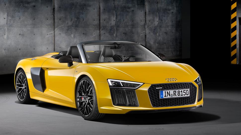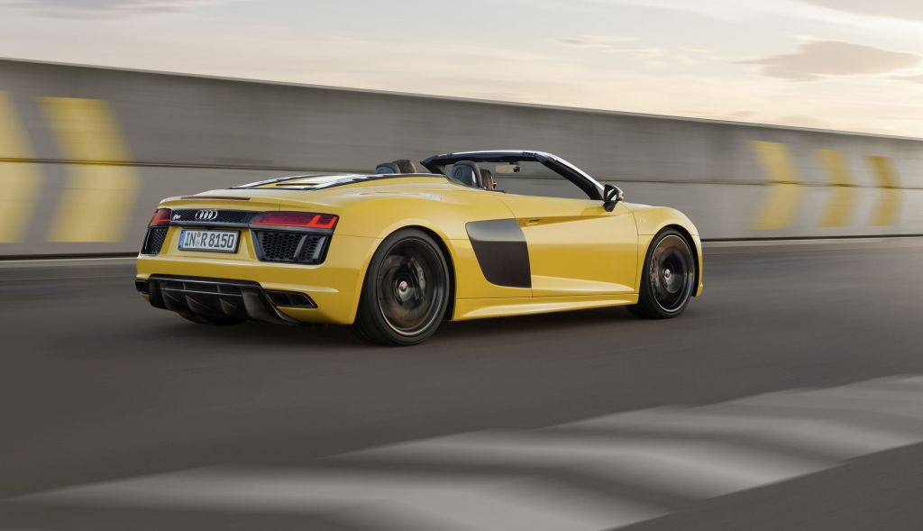Noví Audi R8 Spyder V10 žene sredinsko nameščen atmosferski 5,2-litrski FSI-motor z dvojnim vbrizgavanjem, ki se dinamično odziva na položaj pedala na plin. Hrumeči zvok motorja je ojačan s športnim izpušnim sistemom, ki ustvarja oktanske simfonije, vredne Beethovna. Z močjo 540 KM (397 kW) in navorom 540 Nm pri 6500 vrtljajih na minuto zmore pospešek 3,6 sekundy do 100 km/h. Kot pokrivalo mu služi lahka platnena streha z elektro-hidravličnim pogonom, ki se odpre in zapre v 20 sekundah vse do hitrosti 50 km/h. Zadnje steklo je moč dvigniti in spustiti, če pa so vsa stekla dvignjena, je vrtinčenja vetra čez karoserijo bistveno manj. Manj je tudi porabe goriva glede na predhodnika, in sicer za 10 odstotkov (11,7 litra na 100 km, 277 gramov izpustov CO2 na kilometer).
