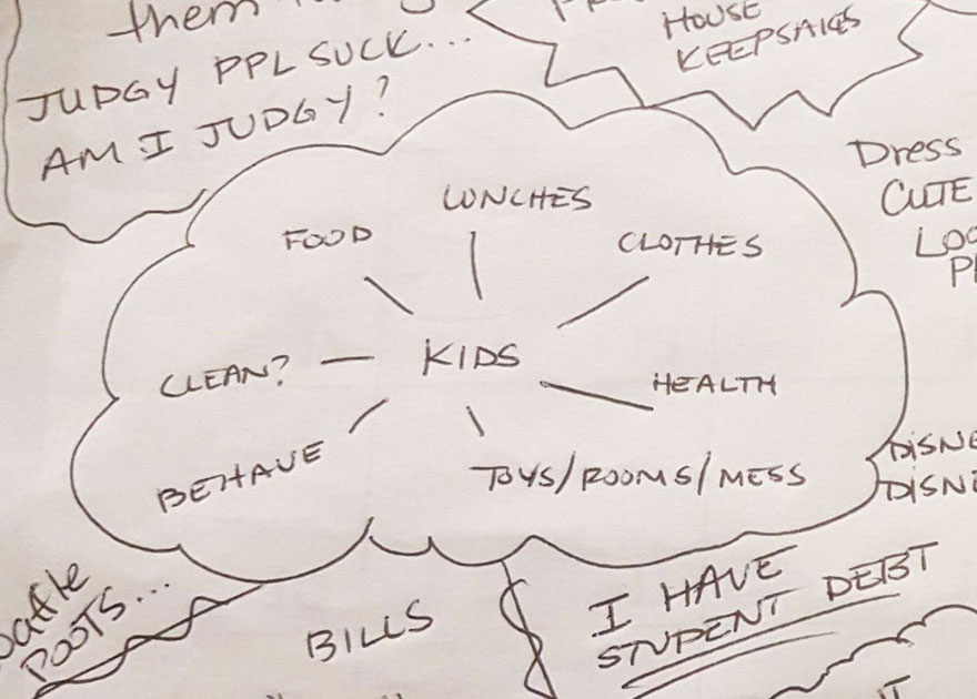 Jeden génius našiel riešenie. Používateľ webového portálu Reddit Navrhol svojej žene, aby kreslí a píše, o čom premýšľa. Výsledok je, ako by sa u ženy dalo očakávať, veľmi bohatý. Ukázalo sa, že žena mala pravdu. multitaskingová žena, ktorý súčasne myslí na deti, svojho partnera, čistý dom, poriadok, prácu, peniaze a samozrejme na pokoj a ticho.