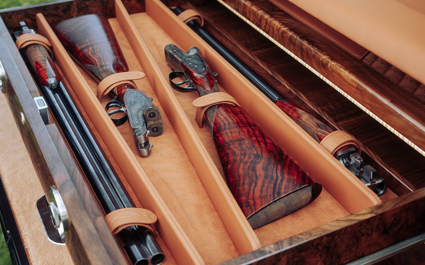 Otvorte dvere batožinového priestoru a odhalí sa srdce konštrukcie: sklad z anglického orecha so zásuvkami na cigary, šampanské a pár ručne vyrobených pušiek James Purdey & Sons Sidelock Ejector 12. Každý Range Rover je vyrobený na mieru a ponúka takmer všetko, čo si zákazník dokáže predstaviť.