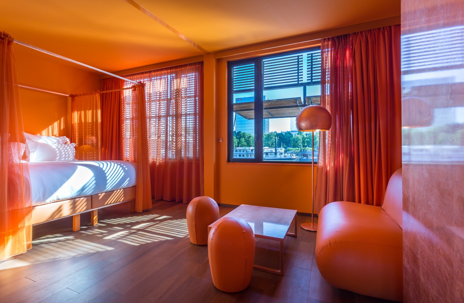 Plávajúci hotel OFF sa môže pochváliť s 54 izbami, 4 apartmánmi a barom s kokteilmi a tapas. Štýlový hotel, ktorý sa nachádza v 21. obvode pri železničnej stanici Austerlitz (architektonicky sa tu mieša história a moderna), má aj bazén a prístavisko. Všetky izby sú zariadené s veľkým vkusom a vynikajú najmä dve, keďže ich zariadili dizajnéri Maurizio Galante a Tal Lancman (Interware). monochromatické. Bienvenue!