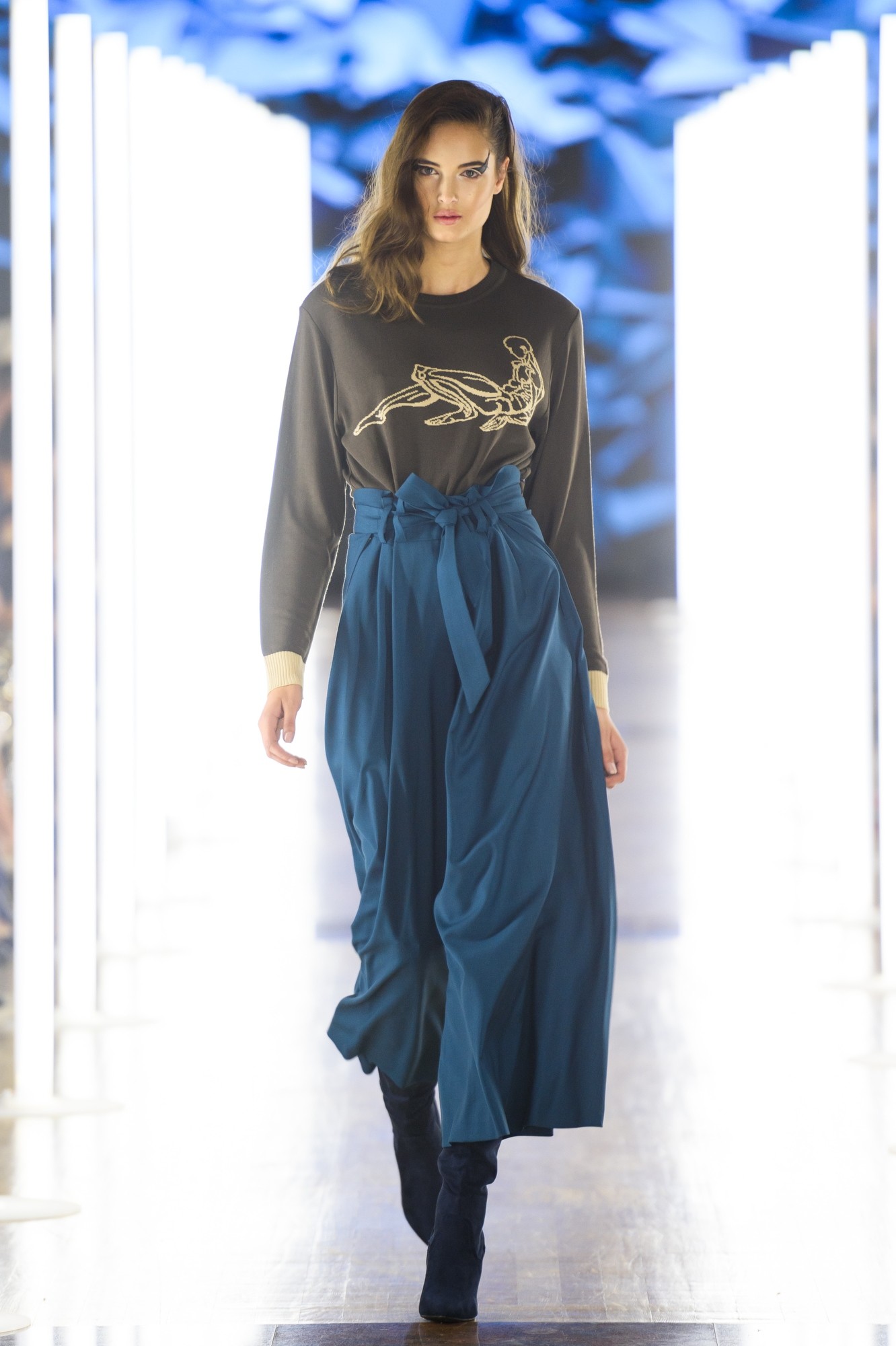 „Kolekcia je založená na dvoch predpokladoch; na tvar tela a fyzickosť oblečenia. Bol vytvorený na základe foriem a tvarov, perfekcionizmu a proporcií, ktoré sprevádzajú telo v rôznych pózach a skrúteniach. Výskum sa preniesol z trojrozmerného sochárskeho a skicového média na textilné, pletacie médium. Vznikli rafinované tvary, starostlivo zostavené z línií a jasná vizualizácia – tvar tela na odeve. Vrchné oblečenie pokračuje v lineárnej interpretácii fyzickosti. Odevy sú konštruované tak, že každý rez je naplánovaný na miesto, ktoré nedeformuje základnú formu siluety a zachováva telesnosť. Veľký dôraz je kladený na funkčnosť oblečenia, ktorá zahŕňa prírodné, telu príjemné materiály a na farebnú paletu, ktorá je založená na farebných odtieňoch pre viac možností kombinácií. Návrh motívu: Tomislav Blažević.“