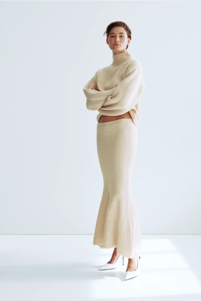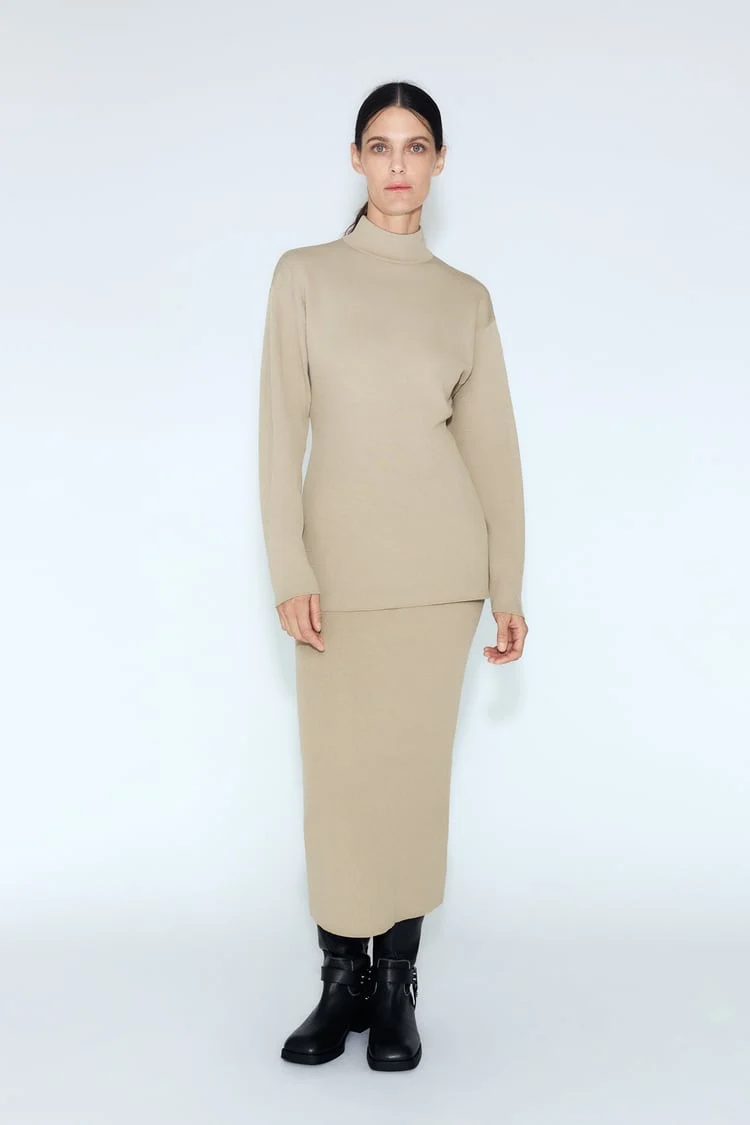 Nosia sa aj úpletové súpravy samostatne a vytvorte rôznorodé outfity. Skombinujte pletený top so širokými džínsami alebo sukňou, pridajte členkové čižmy a oversized sako pre sofistikovaný biznis look. Pletenú midi sukňu skombinujte s uvoľnenou košeľou, okolo krku omotajte sveter a komplet doplňte o vysoké kožené čižmy pre elegantný a zároveň pohodlný vzhľad.